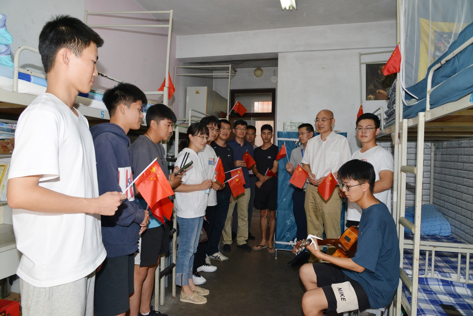 陈克正在学院南区5号楼学生公寓与学生进行了亲切交谈,并向他们送去节日祝福。看到陈校长和各位老师们到来,大家纷纷起立,用掌声致以热烈欢迎。南5A区105宿舍是新生宿舍,同学们邀请陈克正校长及其他部门领导老师弹奏吉他共同歌唱《我和我的祖国》,用歌声向中华人民共和国成立72周年华诞献礼;在南5A区107宿舍,大家共同观看央视《中国梦·祖国颂—2021国庆特别节目》,了解党的历史,赓续红色血脉。陈克正详细了解了秋季学期开学以来同学们在校学习、生活情况,询问大家面临着哪些实际问题,嘱咐大家在校期间养成良好习惯,加强体育锻炼,保持宿舍卫生,做好个人防护,并对同学们积极参与学院新近成立的体育协会参加锻炼表示肯定。同学们表示要牢记校长的深切嘱托,从大一开始做好职业规划,养成良好习惯,积极参与各项文体活动,从自身做起,自觉践行“拥抱体育,出彩人生”的体育改革理念。