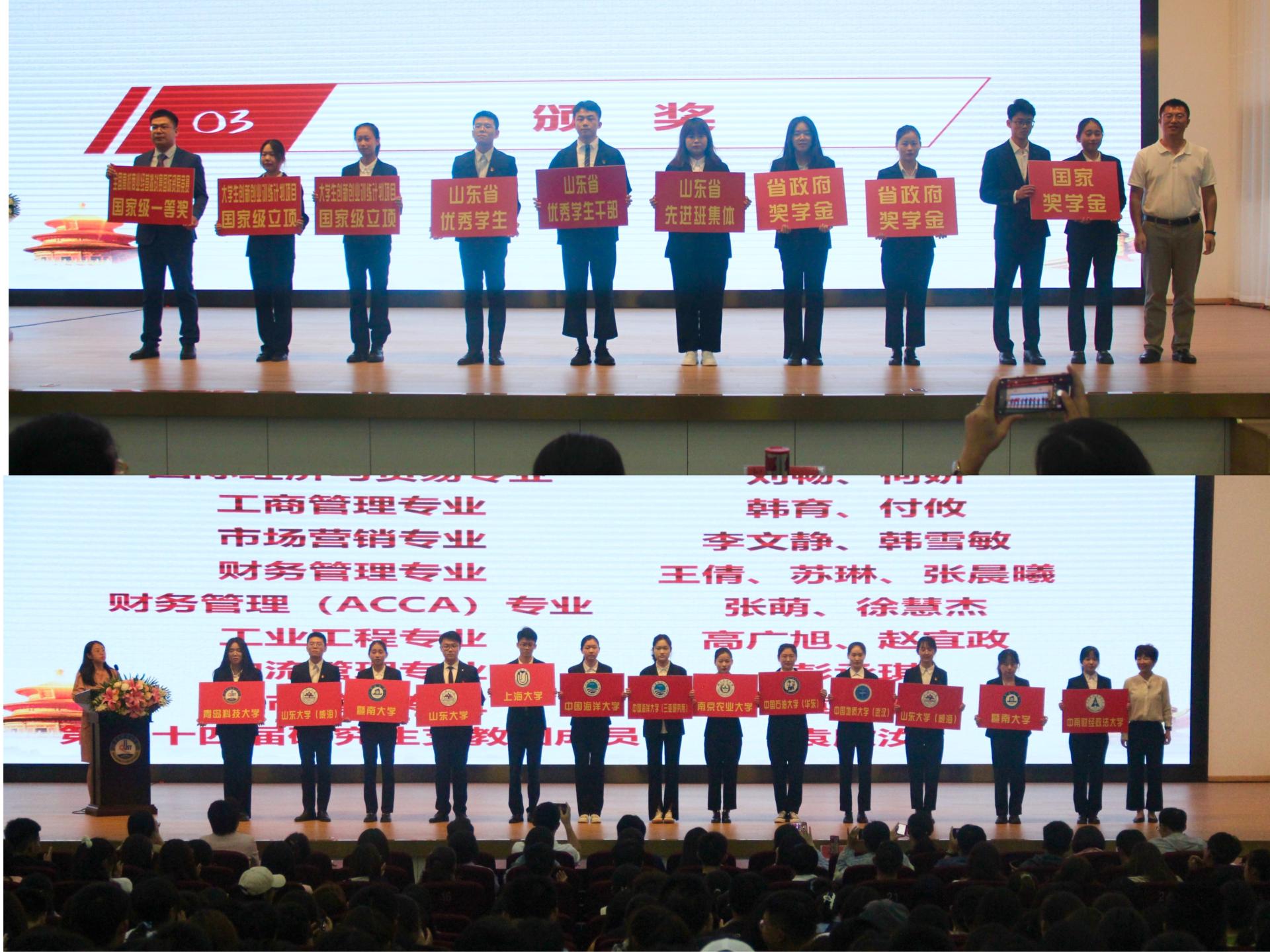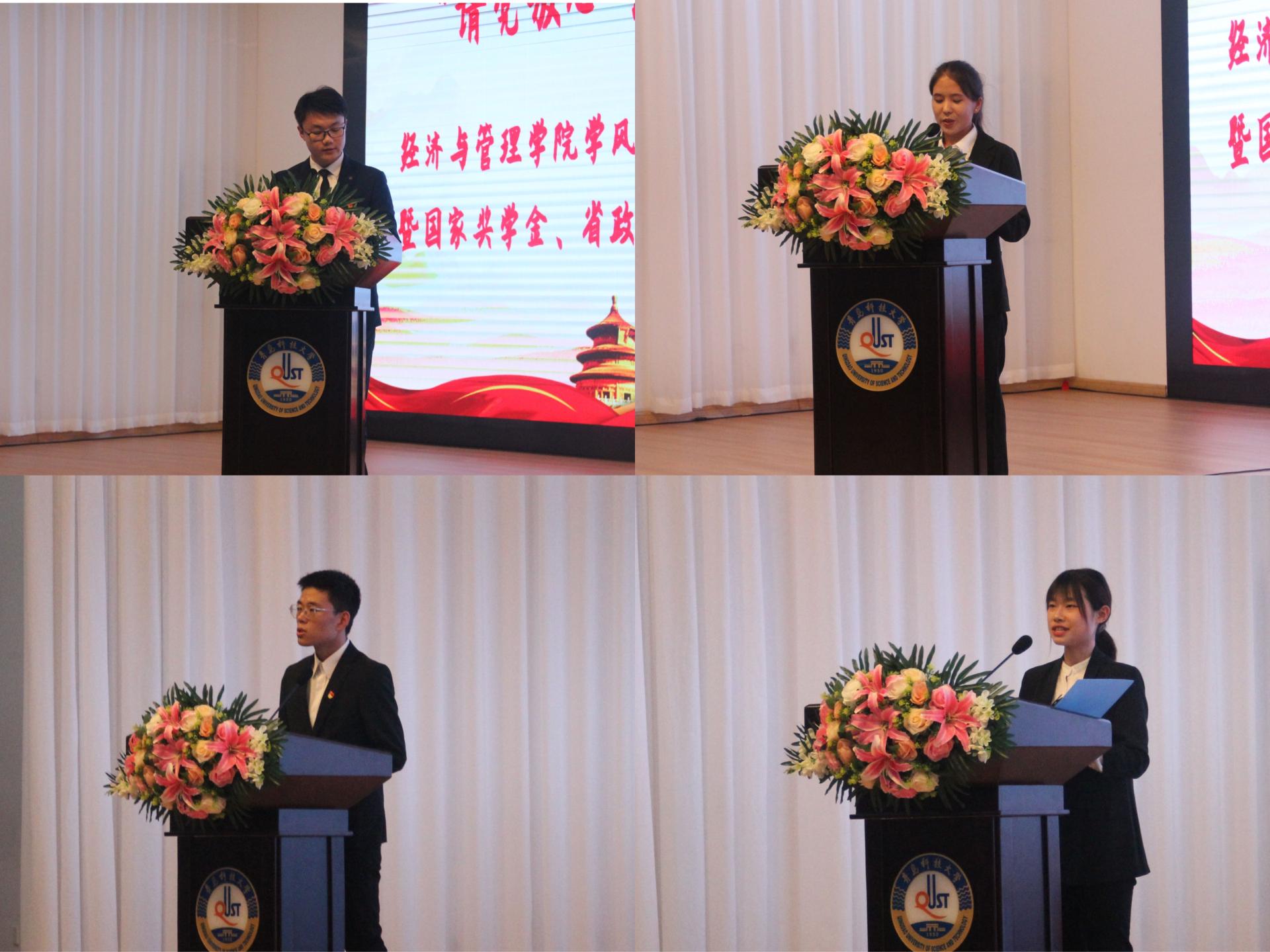 获得省级以上荣誉称号名单》,党委副书记刘跃宁、副院长宫攀为获得省级以上荣誉称号的学生颁奖,2019-2020学年国家/省政府奖学金获得者代表物流182班彭承琪、财务181班王倩、工业182班高广旭分别做了经验交流和成果汇报。