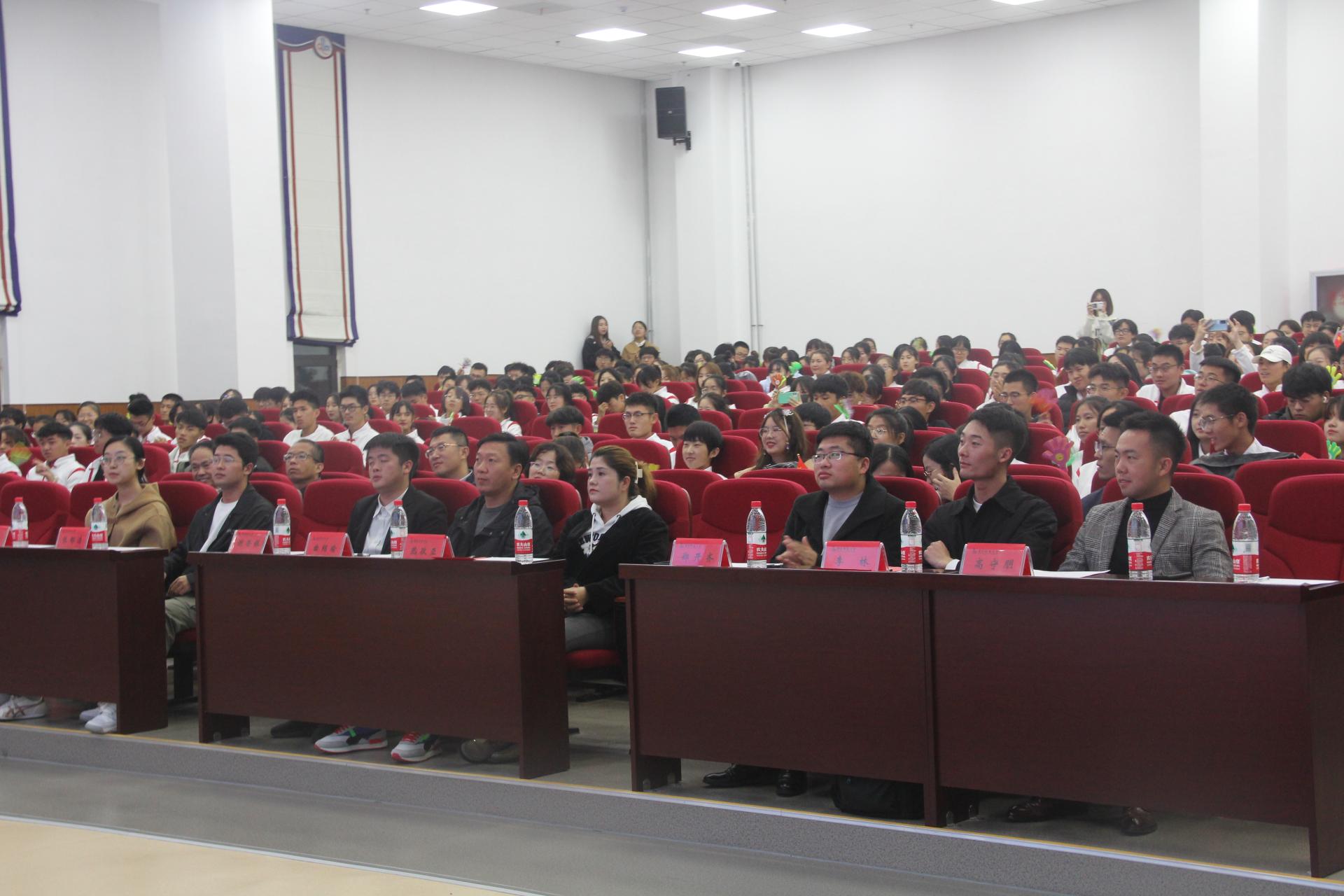 党委副书记兼副院长刘跃宁,2021级班主任杨皎平、赵慧娟、王小兵、孙福平及全体专兼职辅导员出席比赛现场,校团委、学生处及兄弟学院老师担任评委,各年级学生代表近500余人一同观看比赛。