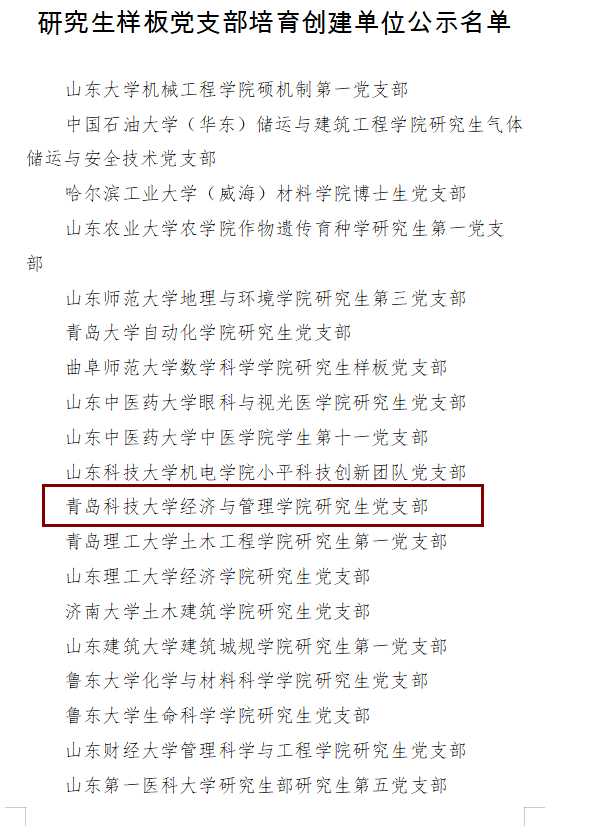 近日,根据《中共山东省委教育工委关于开展全省高校“研究生样板党支部”和“研究生党员标兵”创建工作的通知》(鲁教工委函〔2021〕1号)安排和评审工作方案,经组织推荐、专家评审、集体研究,共遴选产生了20个首批全省“研究生样板党支部”培育创建单位,久久小说