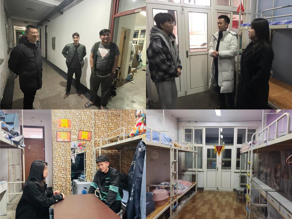 老师们围绕学生返乡情况以及在校学习、生活等方面有无困难进行了详细的交谈,认真检查了宿舍卫生和安全情况,并针对不同年级不同专业学生对于做好假期规划、利用寒假读书充电提出建议,提倡同学们继续保持在校期间“爱体育”的运动习惯,加强体育锻炼,保持身心的健康发展,促进全方位能力的提升。老师们关怀提醒学生在返乡途中以及寒假期间要做好疫情防控,鼓励同学们积极响应团委号召,投身社会实践,利用好“青鸟计划”实习平台,弘扬志愿服务精神,为家乡发展、国家发展贡献青春力量。同时提醒学生注意用电安全、财产安全、出行安全、食品卫生安全以及各类诈骗,利用好“国家反诈中心”APP,提升防范意识。