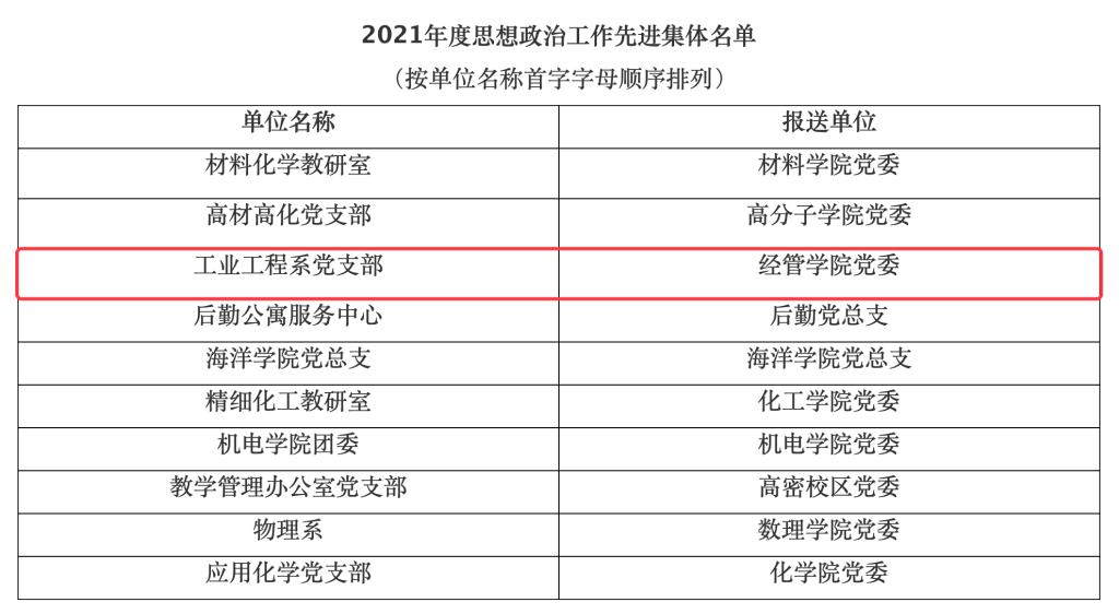工业工程系党支部获评“2021年度思想政治工作先进集体”,王聪老师获评“2021年度思想政治工作先进个人”称号。
