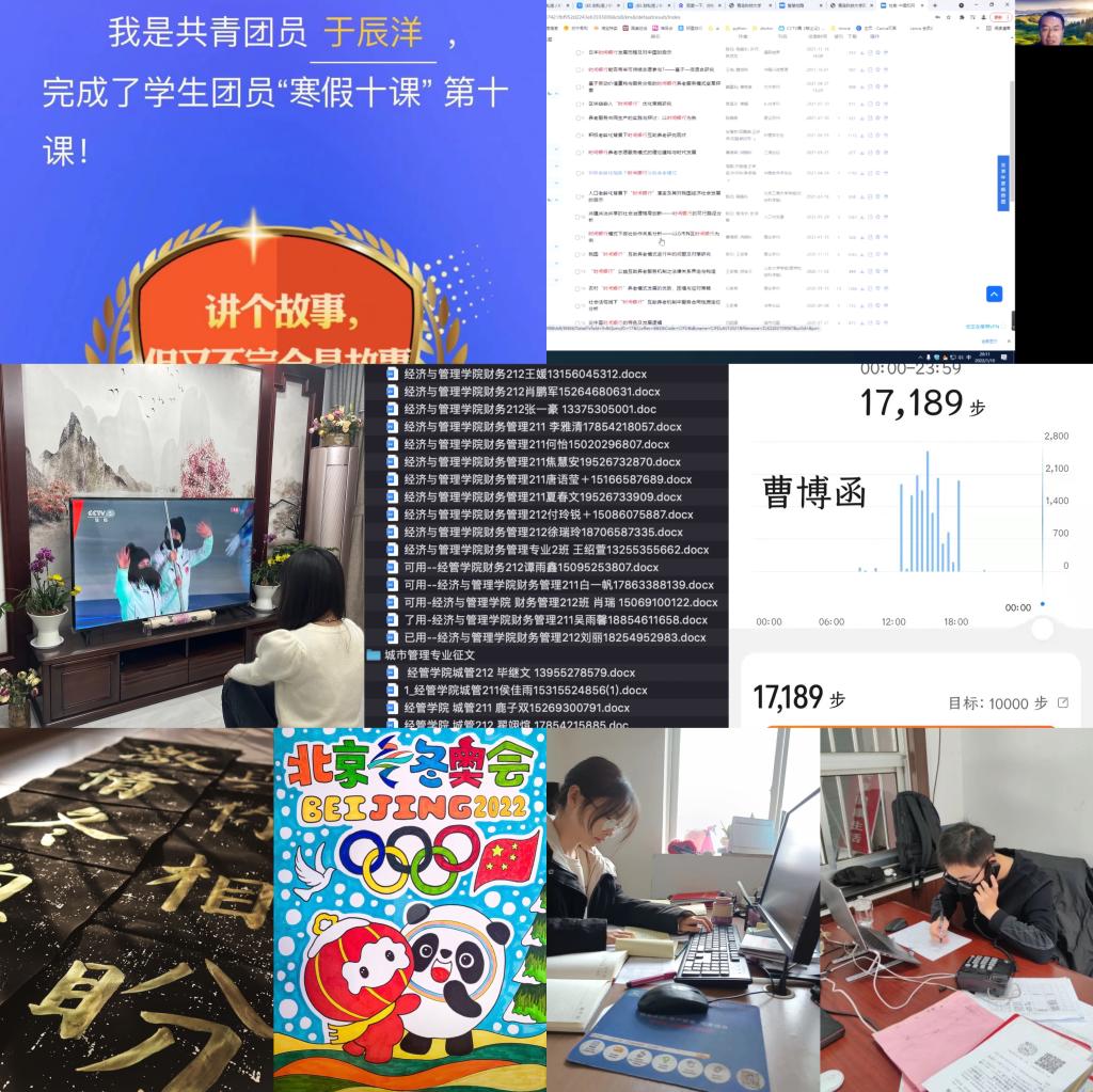 首届“我和我的家乡”短视频/摄影大赛”“一起ying冬奥·年”活动,鼓励学子将情感付诸笔端与镜头,用书法、绘画、vlog视频作品等表达对春节及北京冬奥会的祝福。强化劳育淬炼意志,组织全体学生积极参与寒假社会实践,围绕“青鸟计划”、“一起云支教 共同迎冬奥”专项活动等实践开展全程指导,引导学子在实践锻炼中磨练意志、增长才干。