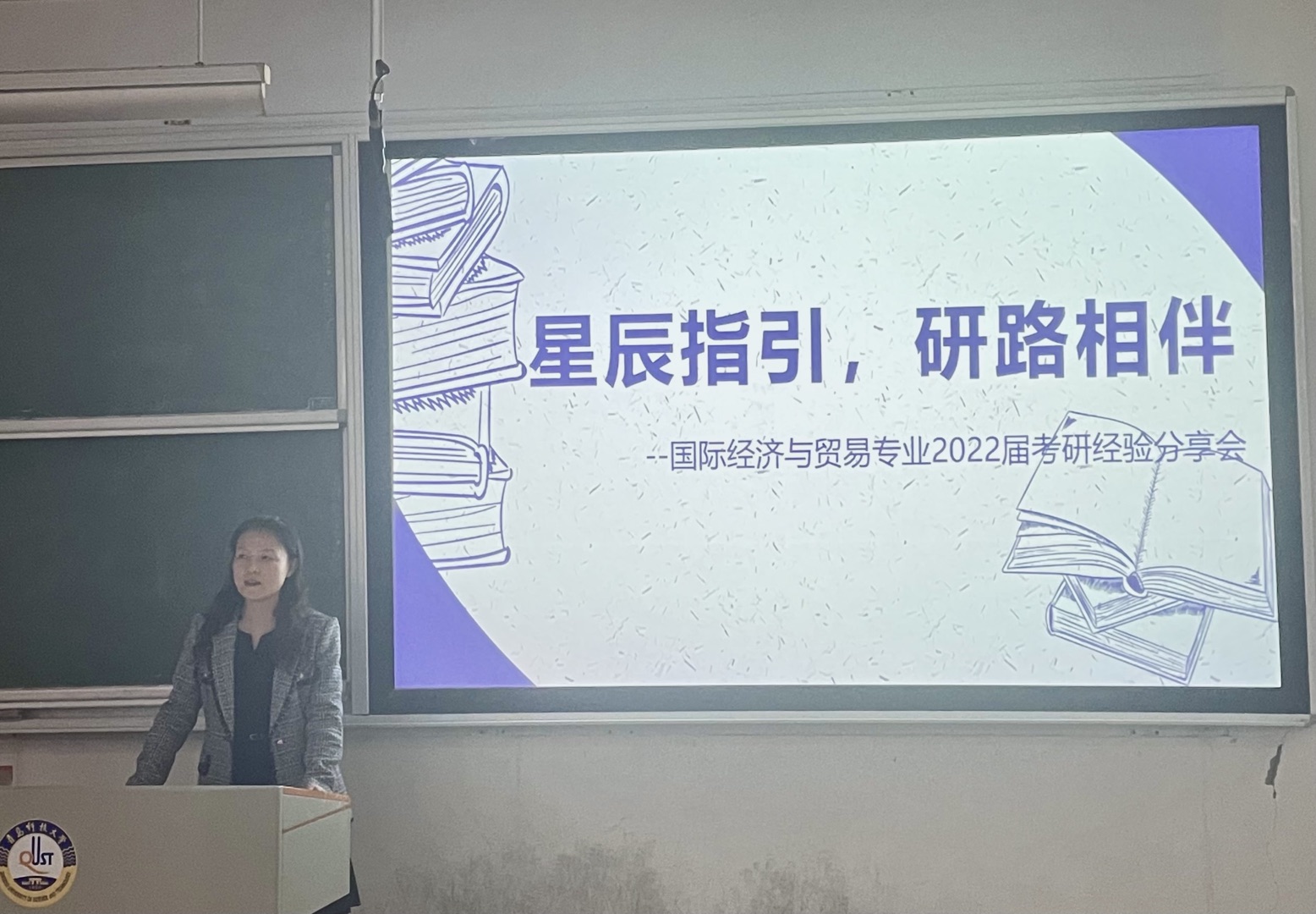 国际经济与贸易专业于弘毅E102教室举办“星辰指引,研路相伴——2022届考研经验分享会”,本次分享会邀请2018级考研成功的6位同学进行经验分享。分享会由国贸系主任任燕主持,国贸专业19级、20级、21级共160余名同学参与活动。