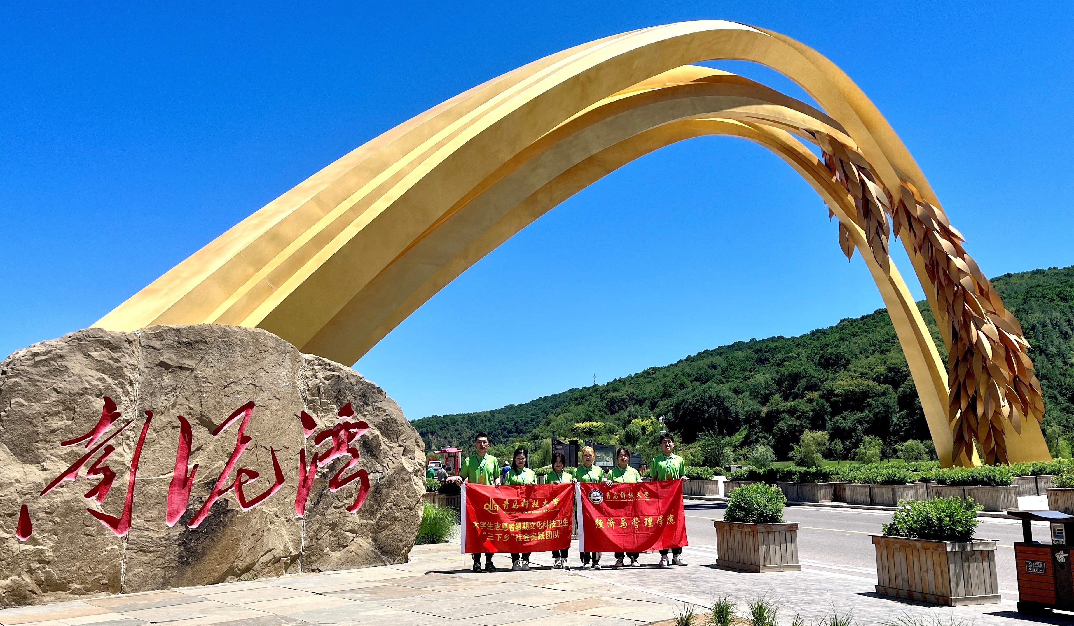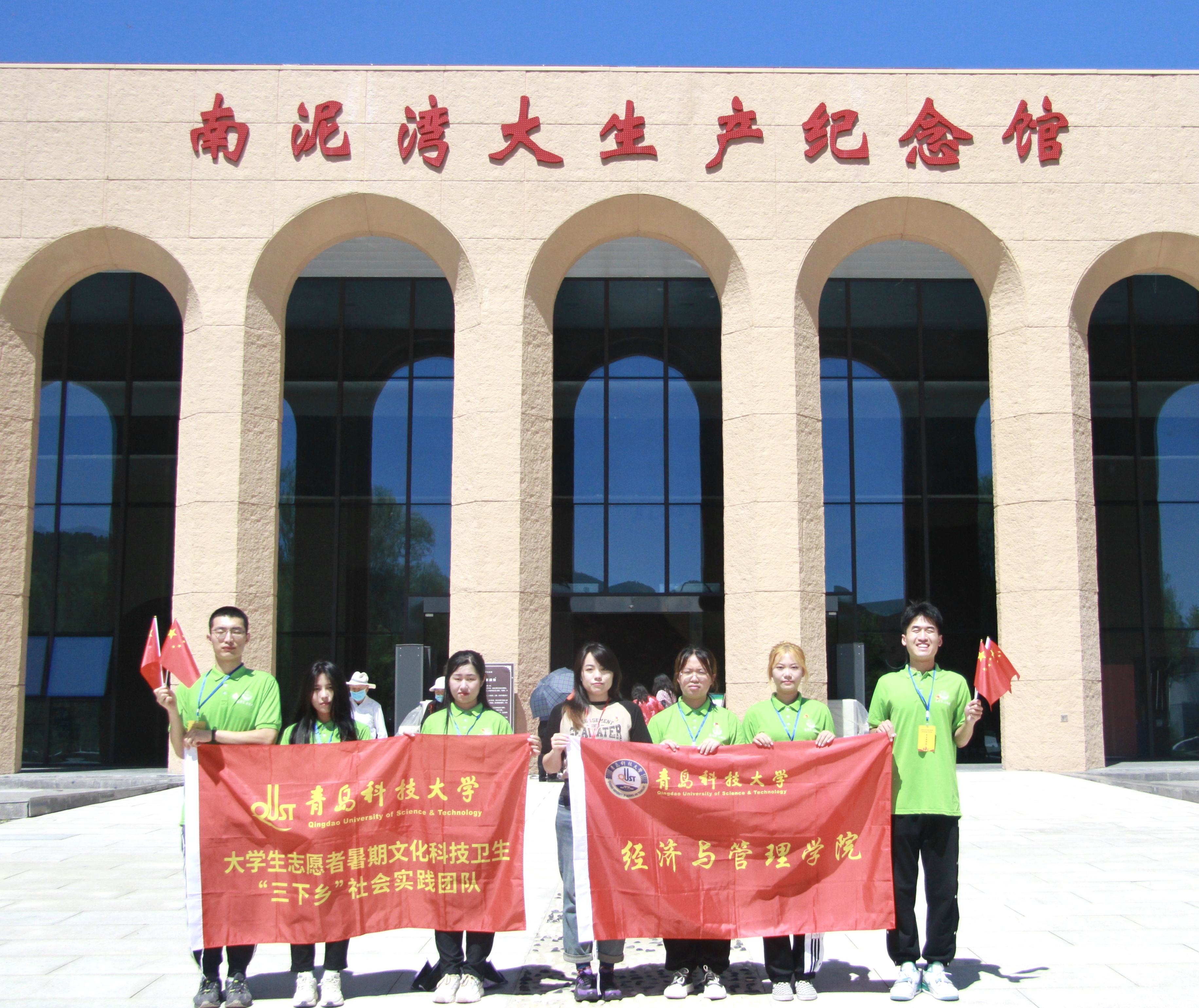 实践团队员在大生产纪念馆跟随着讲解员的介绍,见证了党的峥嵘历史,感受了南泥湾精神的厚重。在这方阳关普照的大地上,在这片生机盎然的田野里,队员们深情唱起了歌曲《南泥湾》,手中的红旗迎风而动,与万里晴空交相辉映,热情歌颂了开荒生产建立功勋的八路军战士,重温了抗战时期大后方军民自力更生、奋发图强的延安精神,帮助同学们深切感悟到如今的幸福生活是在革命先烈的鲜血与牺牲中诞生的,我们应该倍感珍惜,铆足劲头,共同实现中华民族伟大复兴的中国梦,建设一个更加强大、美丽的祖国。