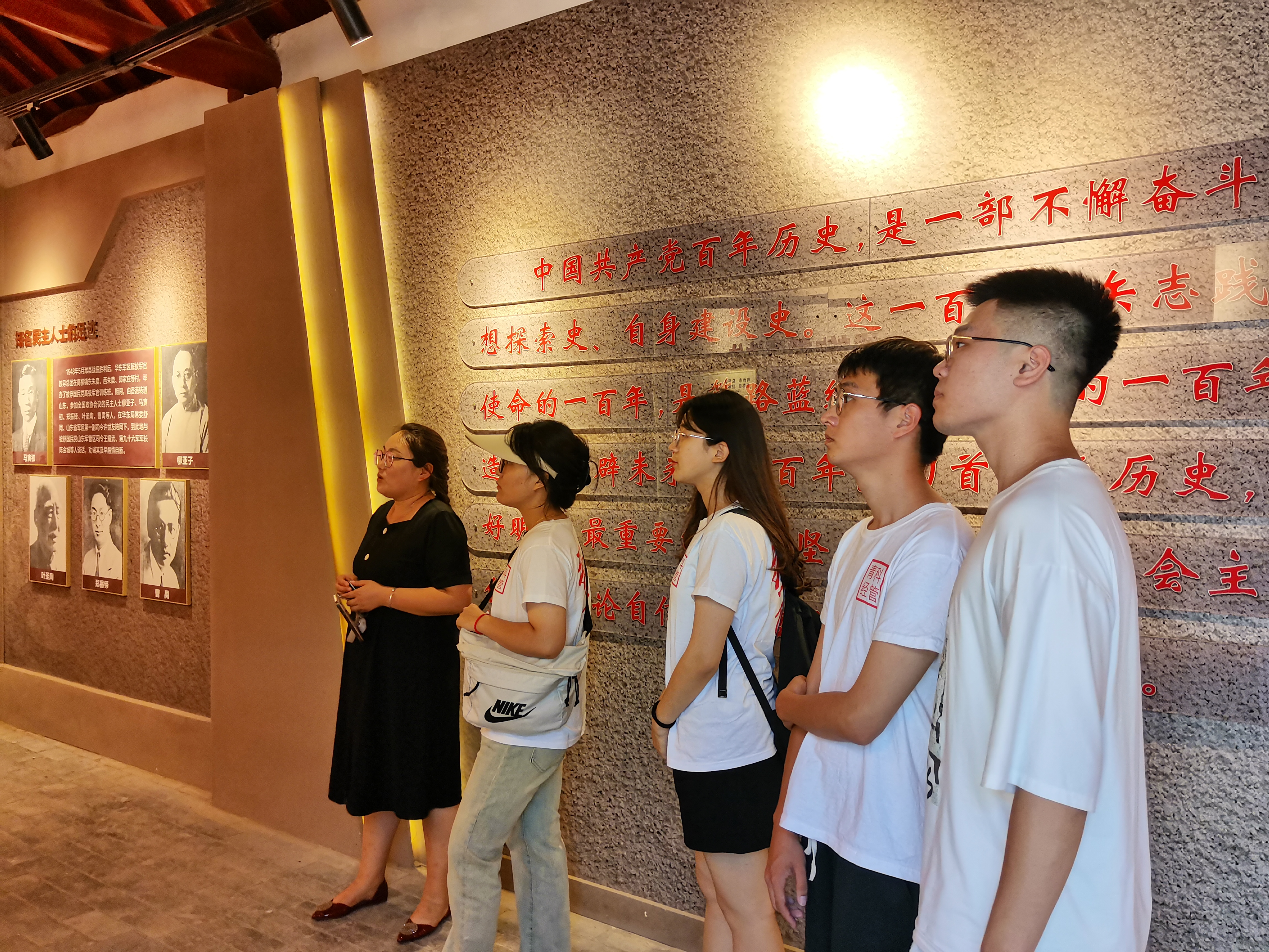 听党指挥,紧跟党走,本次社会实践的第一站抵达青州段村烈士祠接受革命历史教育与熏陶。盛夏时节,草木葳蕤,在潍坊青州市高柳镇北段村不远,绿树掩映下,一座青砖青瓦的古朴院落呈现眼前——段村烈士祠。实践队员们放轻脚步,满怀敬意的踏入了正门。匾额“浩然正气”,与门联“千古壮烈,万载光荣”相应,烈士祠内“一门九烈”,“一门三烈”的先烈事迹让实践队员心生敬畏。面对正前方的烈士纪念碑,队友们在讲解员的引导下,一同鞠躬以示对烈士的缅怀。从事迹展中我们了解到了当时先辈英雄们抗战时的艰辛,也看到了当时中国人民抵御外敌的万众一心。这种精神深深的鼓舞着队员们,在实践的第一天就深深体会到了此次社会实践活动所蕴含的重大意义。先辈们奋勇杀敌才创建如此美丽之中国,身为吾辈后代,让中国摆脱贫困的苦恼,让中国人民都过上好日子,是我们这代青年人应肩负的重任。乡村振兴,势在必行!
