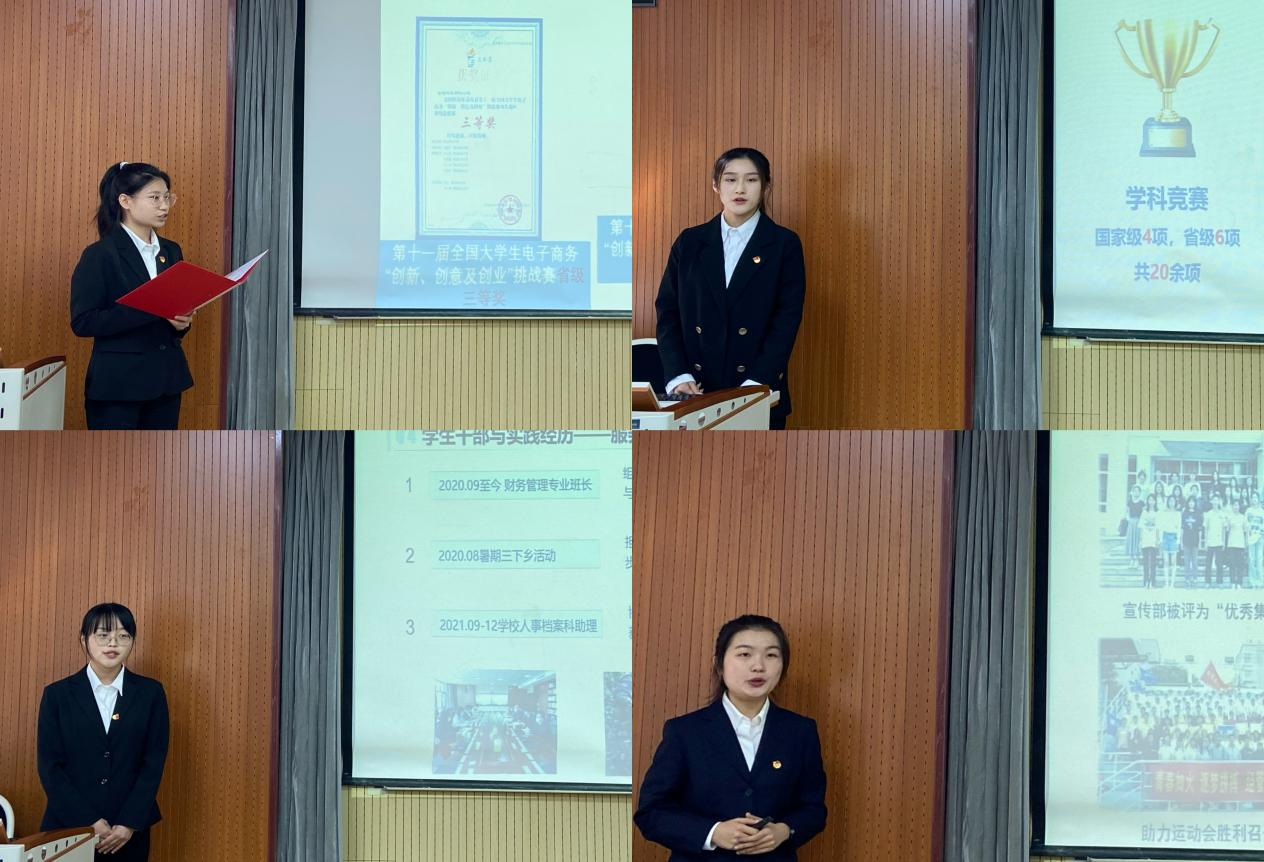 为充分发挥榜样示范作用,启动仪式结束后,学院举行了2021-2022学年山东省国家奖学金、省政府奖学金答辩会。国贸191班王孟轩、财务(ACCA)191班王荔荣、物流192班王琳斐、财务191班张帆、物流192班李婕、工业191班曾梅花、营销202班王率龙、国贸202班刘汝童、管理202班苗孟飞、国贸202班闫佳琪、财务212班张一豪、管理211班胡尊鑫12名候选学生依次上台,从思想品德、学术科研、社会实践、服务同学等方面进行自我展示,充分展现了经管学子勤学善思、明辨笃行优秀品质。经学院奖学金评审委员会成员公开投票,财务191班张帆、工业191班曾梅花同学获得2021-2022学年国家奖学金。