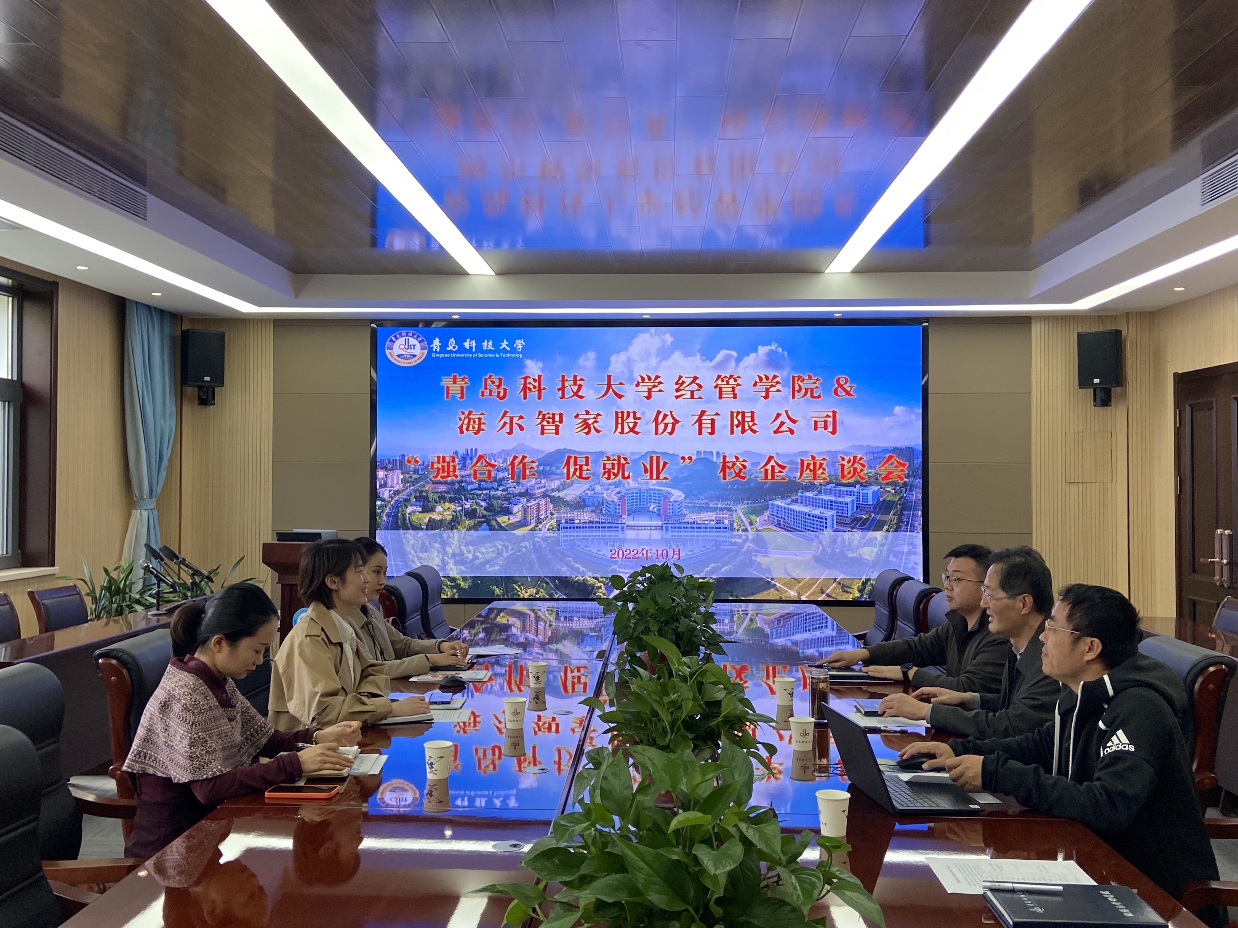 于经管楼313会议室举办“强合作 促就业”校企座谈会,海尔智家股份有限公司黄岛园区一流人才吸引接口人王欣一行3人来校交流,探讨人才招聘、实习实践、合作培养等合作事宜。学院党委书记李德成,工业工程系主任于龙振,2023届毕业生辅导员孙一君、占晓祎参与座谈会。