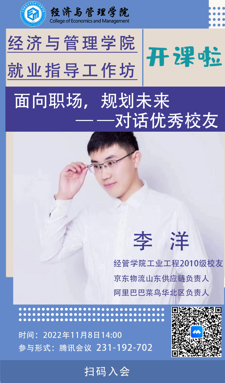 推出“促就业”组合拳,开展就业指导工作坊,助推2023届毕业生高质量就业。11月8日,就业指导工作坊第一讲邀请工业工程专业2010级优秀校友、京东物流山东供应链负责人、阿里巴巴菜鸟华北区负责人、山东速达云仓仓储服务有限公司和山东合聚网络技术有限公司的联合负责人李洋开展《面向职场,规划未来——对话优秀校友》经验分享交流会。久久小说