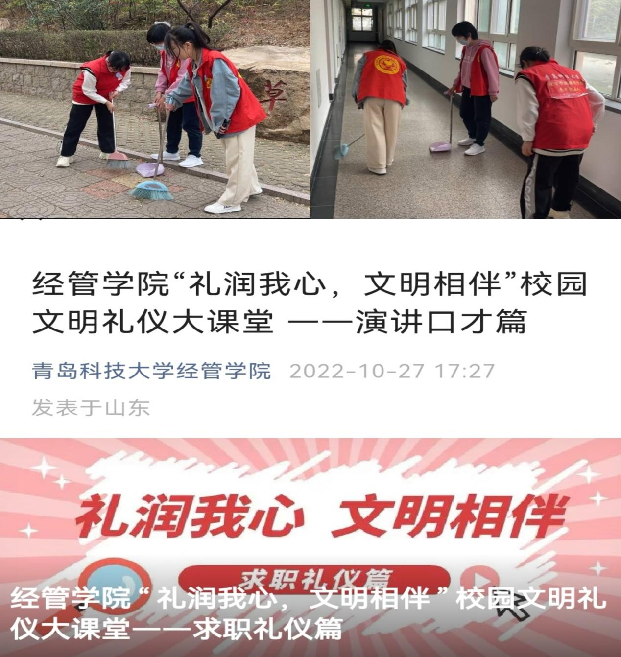 学生会于学院公众号推送“校园文明礼仪大课堂”系列文章,从求职礼仪、演讲口才等方面引导同学们保持良好的礼仪习惯,践礼仪之行,争做时代先锋青年。