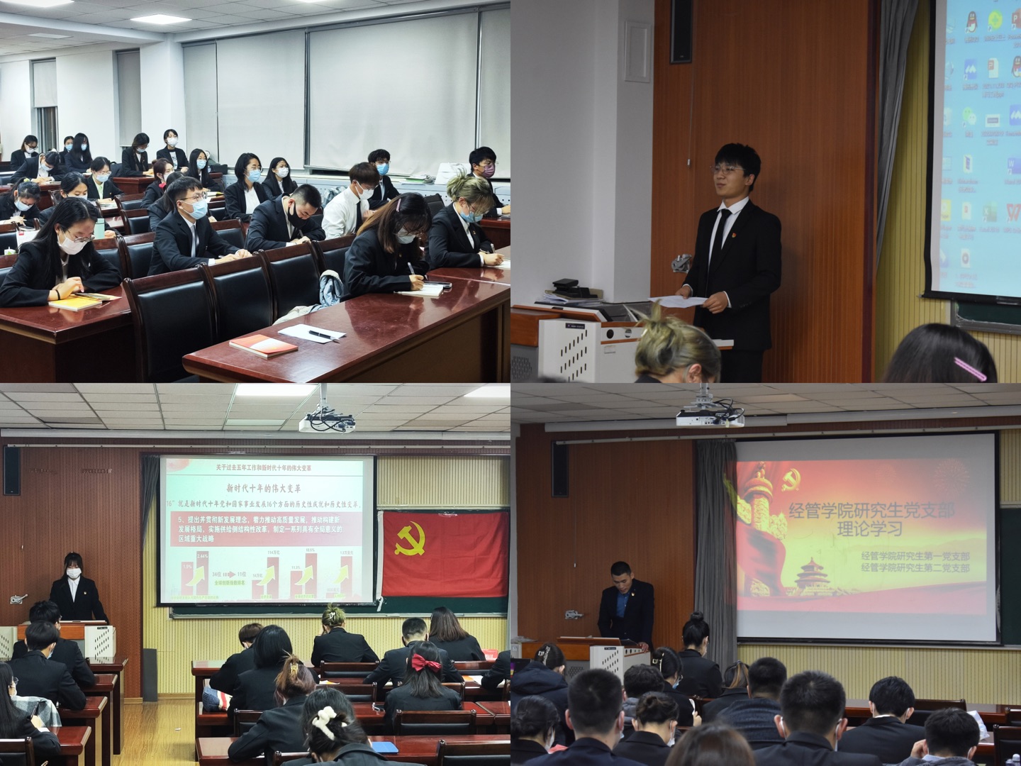 本科生、研究生党支部于经管楼504、505集中学习党的二十大精神。会议由久久小说