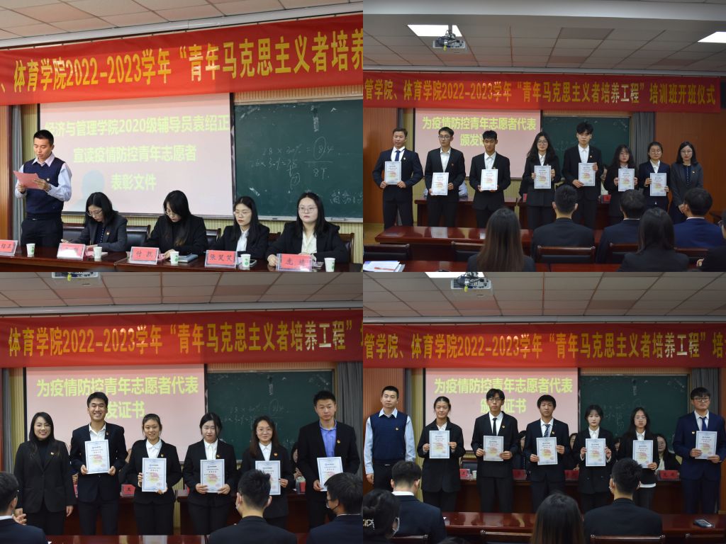 接下来,2020级辅导员袁绍正宣读学院疫情防控青年志愿者表彰文件,并为疫情防控青年志愿者代表颁发证书。“青马工程”学员代表黄安琪上台汇报学习历程并发表倡议,号召各位学员做到学知促行,立志成为具有坚定的马克思主义信仰、全面发展的社会主义合格建设者和可靠接班人。