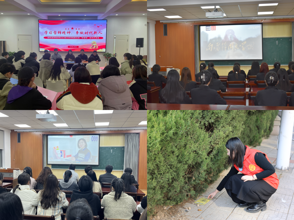 以原原本本学、逐字逐句学的方式认真领悟贯彻习近平总书记关于深入开展学雷锋活动的重要指示精神,举办“学习雷锋精神,争做时代新人”主题读书分享会,“我来学”“我来读”“我来谈”“我来做”四个版块引领学生学懂弄通雷锋精神时代内涵;“3+N”续写雷锋故事,以团支部为单位,为青年办好一件实事,组织好一次主题团课,重读一次雷锋日记,让雷锋精神在青年学子心中落地生根;重温电影《永远的雷锋》,引导学生在一幕幕真实场景与人物形象中感悟雷锋平凡而伟大的一生,用雷锋精神为灵魂“补钙”、为品德“提纯”、为本领“淬火”。