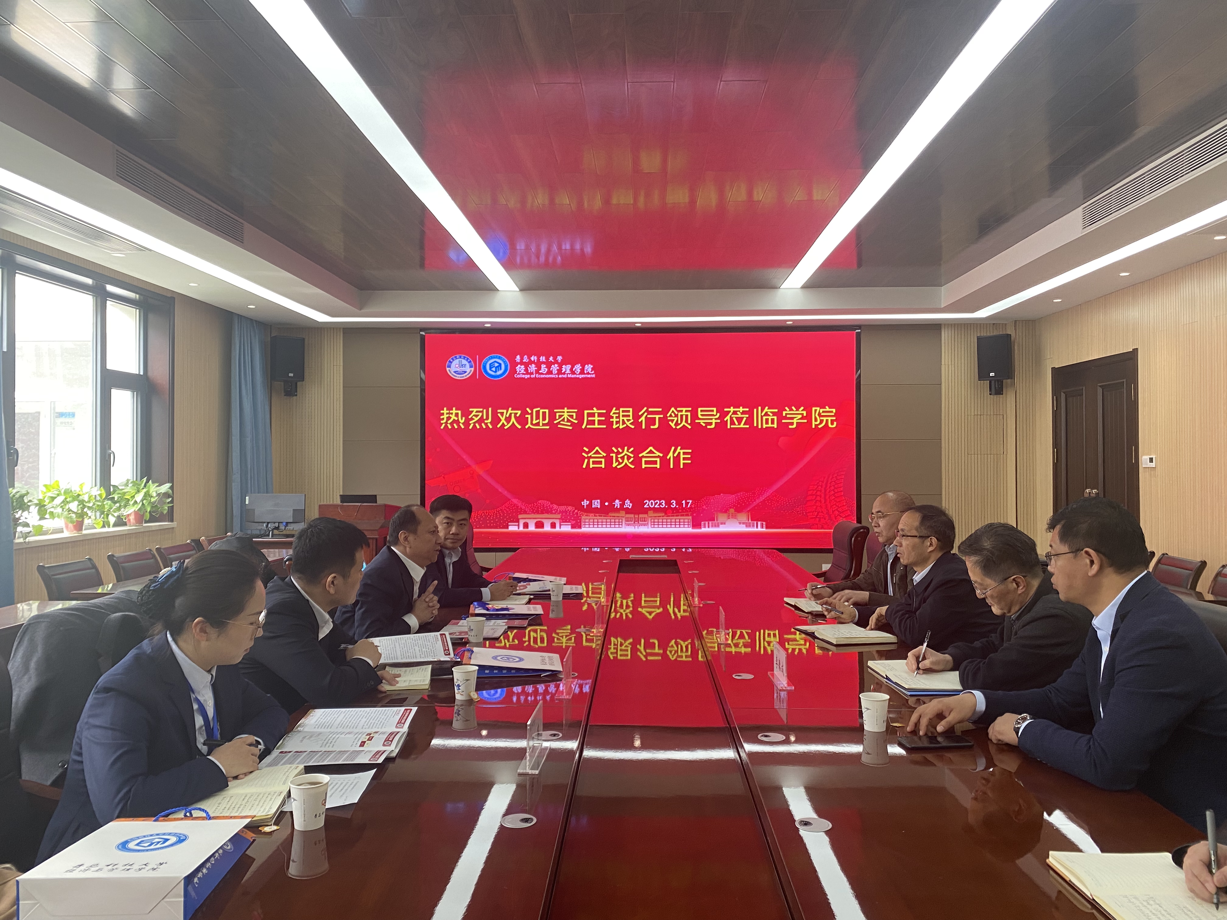 3月17日上午,枣庄银行党委副书记、监事长沙雪斌,党委委员、人力资源部总经理马云飞,枣庄市委组织部机关党委专职副书记王振及相关工作人员一行来院洽谈校地融合MBA班合作项目。学院党委书记李德成,院长李勋来,正处级组织员王成果,学校枣庄融合创新发展中心主任曲明出席洽谈会。