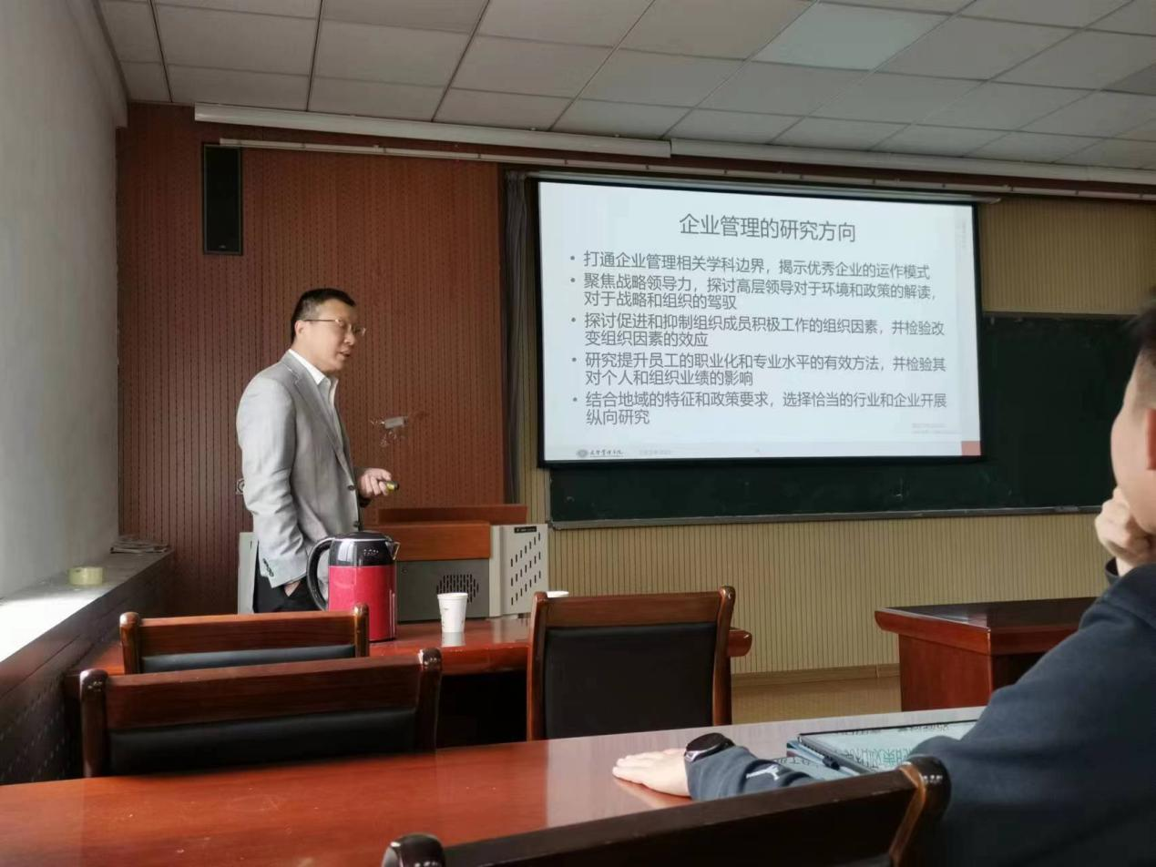 楼504会议室举办,此次论坛邀请到了北京大学中国社会科学调查中心主任、北京大学光华博雅特聘教授、光华管理学院行为科学研究中心主任张志学教授,主题为“数智时代管理研究的趋势和方向”,学院全体研究生参加论坛会。