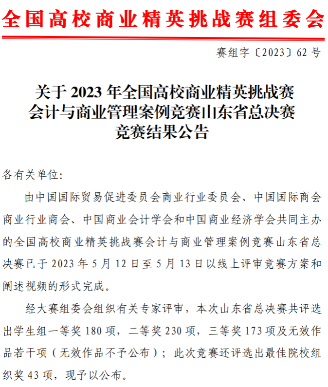 近日,由中国国际贸易促进委员会商业行业委员会、中国国际商会商业行业商会、中国商业会计学会和中国商业经济学会共同主办的全国高校商业精英挑战赛会计与商业管理案例竞赛山东省总决赛以线上评审竞赛方案和阐述视频的形式完成。久久小说