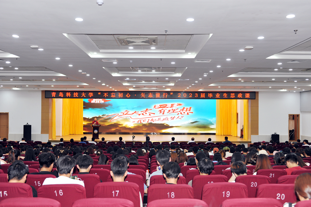 承办,艺术学院协办的《奔赴年轻的“战场”——2023届毕业生思政课》在崂山校区第二报告厅举行。学校党委常委、副校长丁林,党委常委、宣传部部长张洪坤,学生处、校团委、教务处及崂山校区各学院师生代表同上一堂别开生面的思政大课。