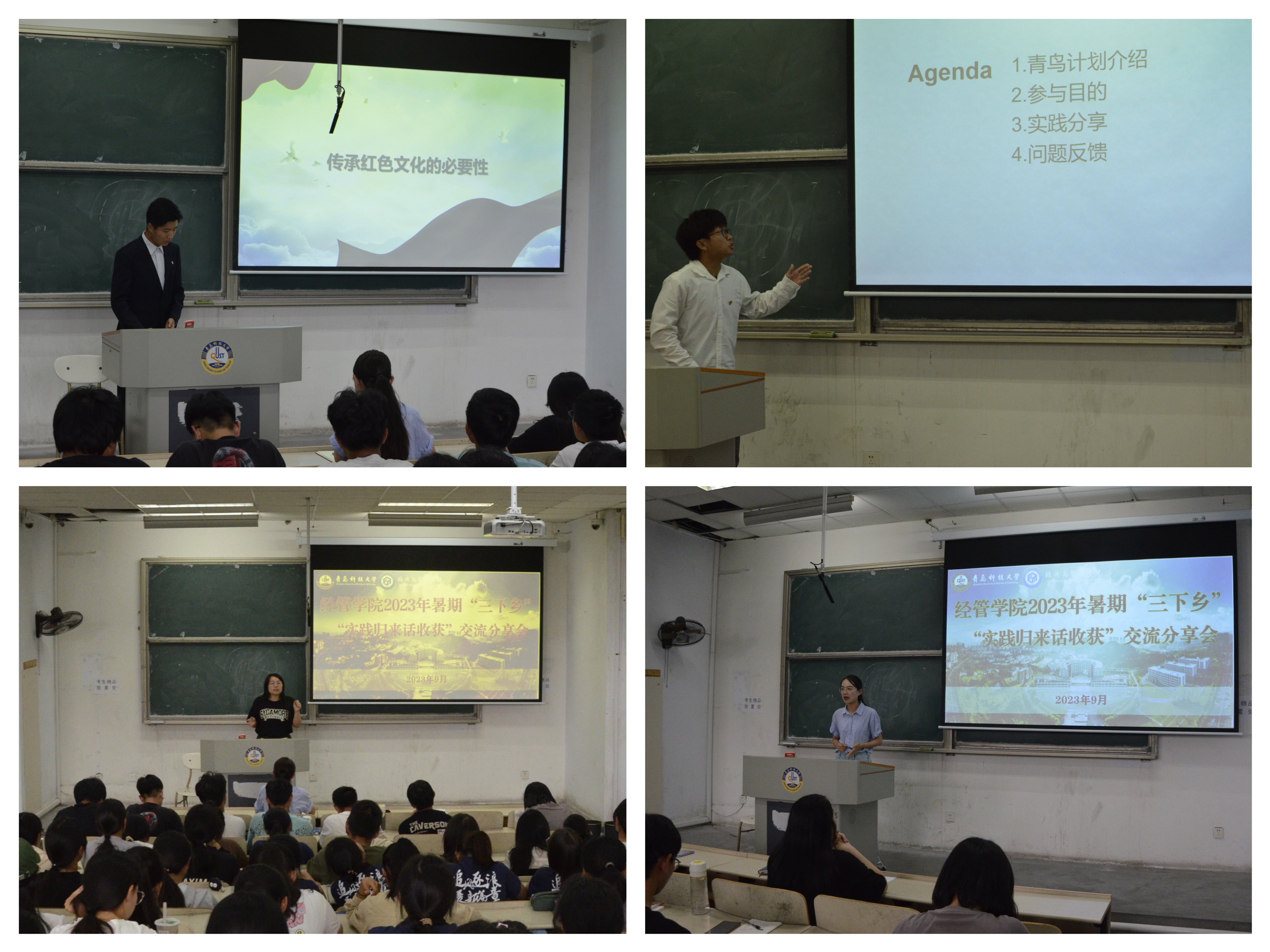 团委于9月26日下午在弘E302举办2023年暑期“三下乡”实践归来话收获交流分享会。学院志愿服务负责老师付凯、2023级辅导员占晓祎出席会议,学院大一、大二学生参加了分享会。