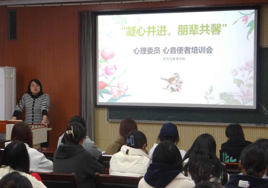 于经管楼419会议室开展“凝心并进,朋辈共馨”新生心理委员培训会,培训会由学院心理工作站站长付凯主讲,2023级本硕心理委员以及院权益部成员参加此次学习。