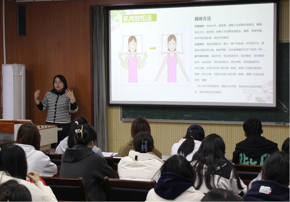 培训会伊始,付凯指出,要以融合式方法提升心理育人整体效能,正确认知心理问题,科学掌握心理调适方法,当出现心理问题时,应该认真对待、勇敢面对,可以采用腹式呼吸法、肌肉放松法等方法进行缓解。同时,要以精准式方法增强心理育人针对性,心理委员应该承担了解与报告班级内同学的心理状况开展活动等职责,及时与辅导员交流反馈。其次,要以协同式方法发挥心理育人合力,付凯介绍了如何进行心理咨询、预约及心理咨询的地点及联系方式等,加强校院协同开展心理危机高风险学生个案管理和跟踪干预。