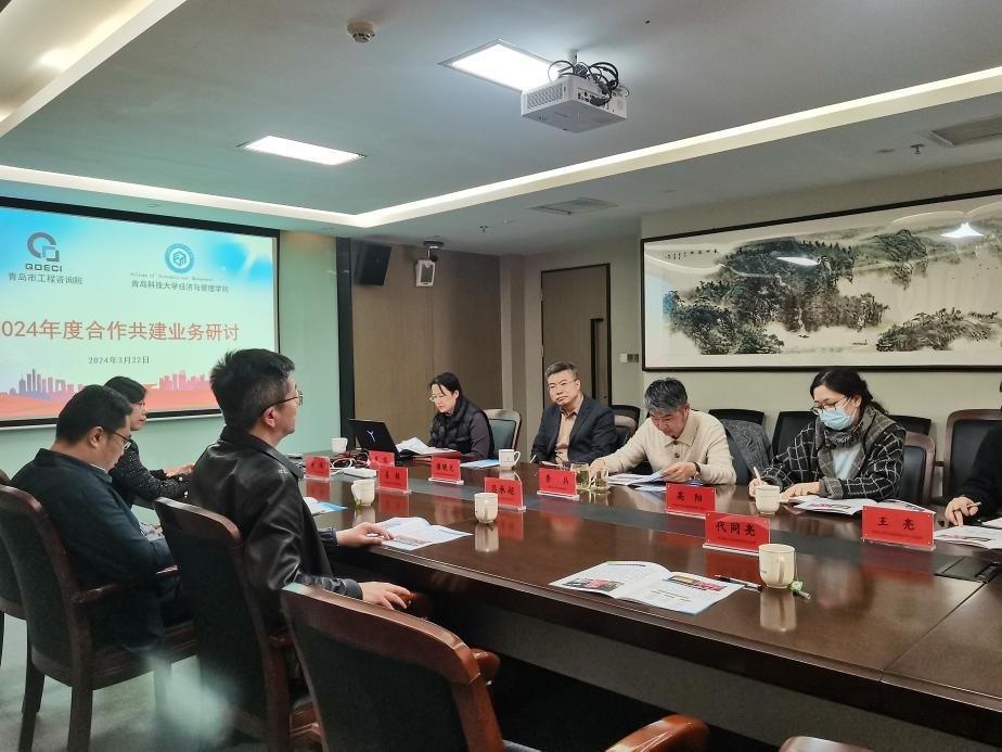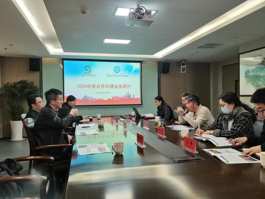 座谈会上,吕承超院长介绍了学院发展的基本情况,学院学科设置以及学生培养的基本情况。李兵院长介绍了青岛市工程咨询院的整体情况,高阳主任主要介绍一些对应的国家政策。重点围绕未来在数据处理、财务大数据、营销人才培养方面等展开讨论。另外也对合作共建、学科建设等方面进行细致讨论。