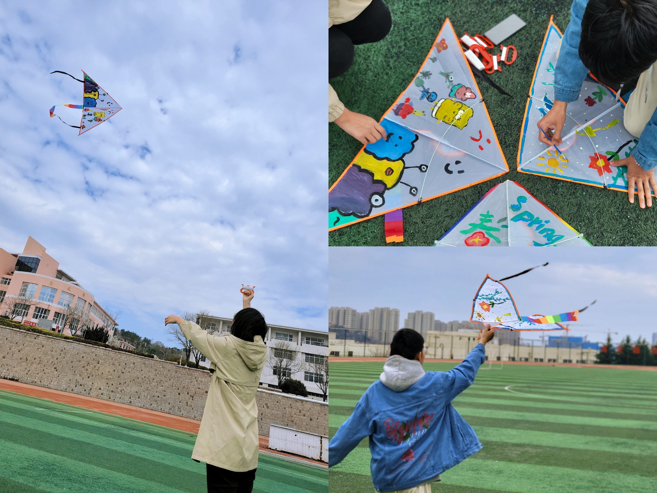 筝舞耀蓝天,纸鸢寄思念。同学们手绘风筝,寄语春天,用五彩画笔将自己对春天的热爱,跃然于风筝之上。将对春暖花开、万物复苏的期待和对美好生活的向往寄望于手中的风筝线,将青年学子美好的祝福和思念送给远方的革命前辈。
