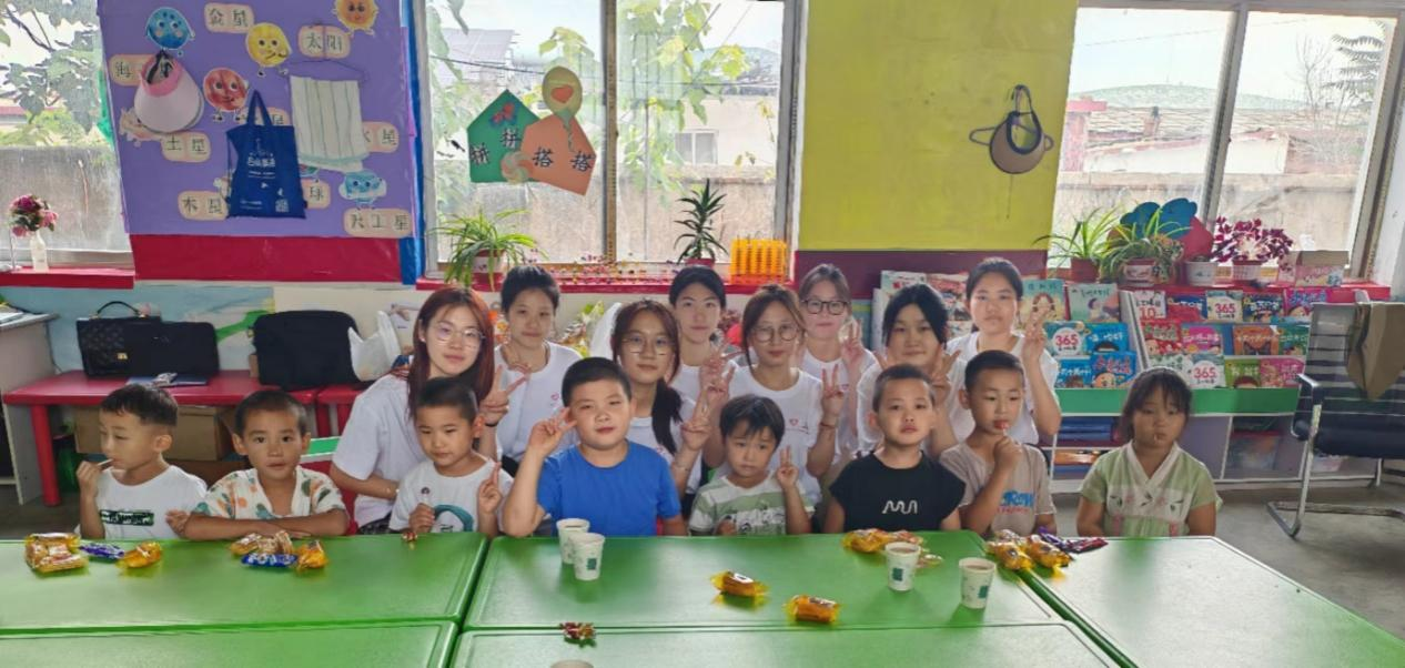 的校徽、校史,讲解了志愿服务精神,并与小朋友们亲切交流。实践队员还为小朋友们播放了安全教育类视频,告诉小朋友们发生火灾时的逃生办法、家庭用电安全常识以及运动安全、洪水安全等自救知识。在小朋友们观看完视频后,实践队员们和小朋友们一起玩了安全自护跳棋和吸管积木,让小朋友们在玩耍中学到知识,寓教于乐。