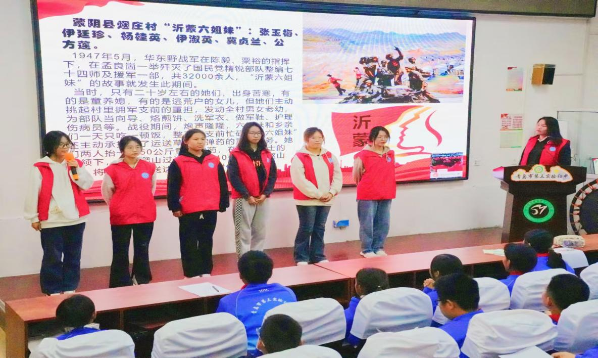 “红色领航,寻迹沂蒙”沂蒙精神宣讲团赴青岛市第三实验初中进行宣讲活动。