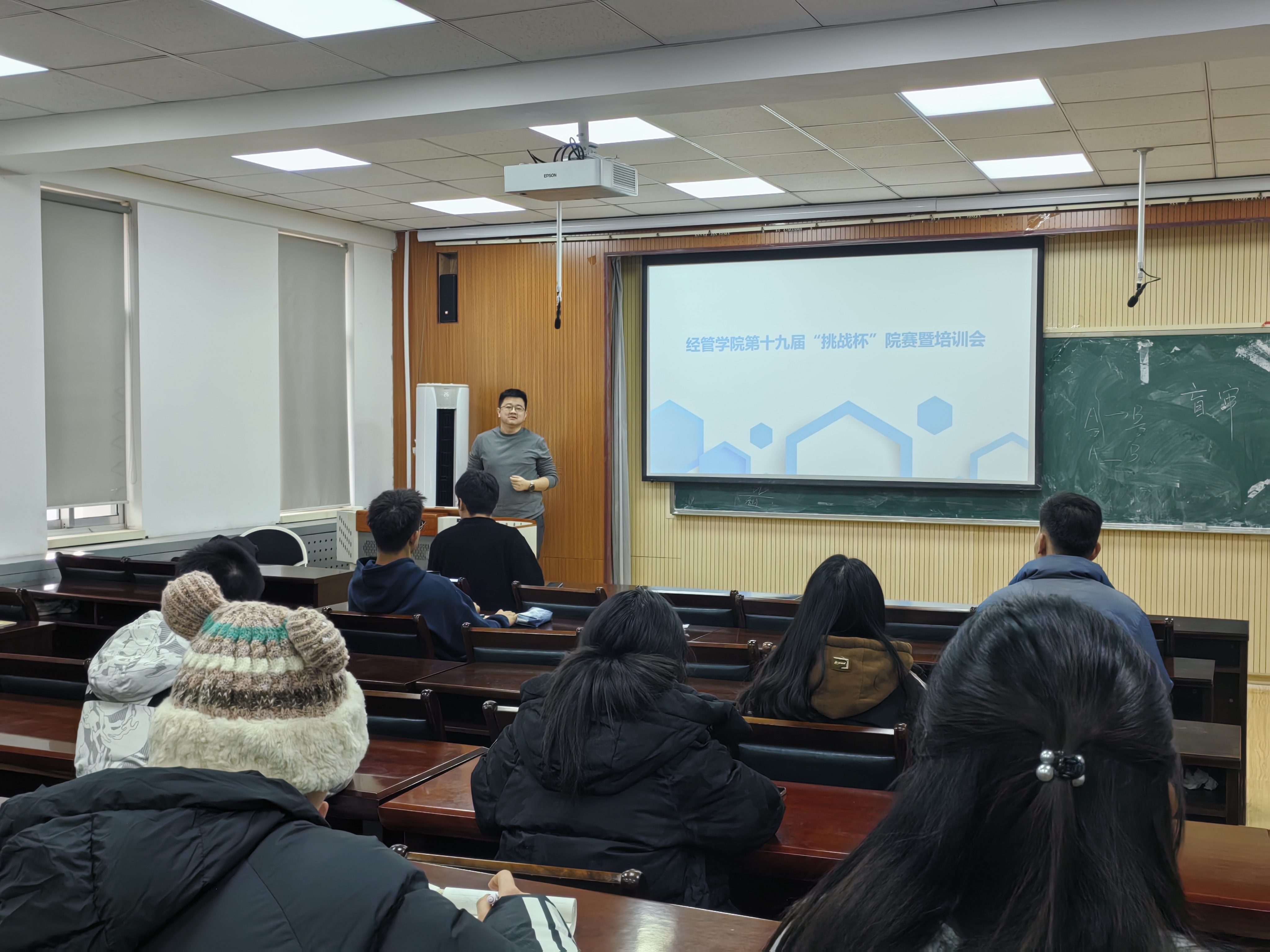 于经管楼419举办第十九届“挑战杯”全国大学生课外学术科技作品竞赛院赛暨培训会。