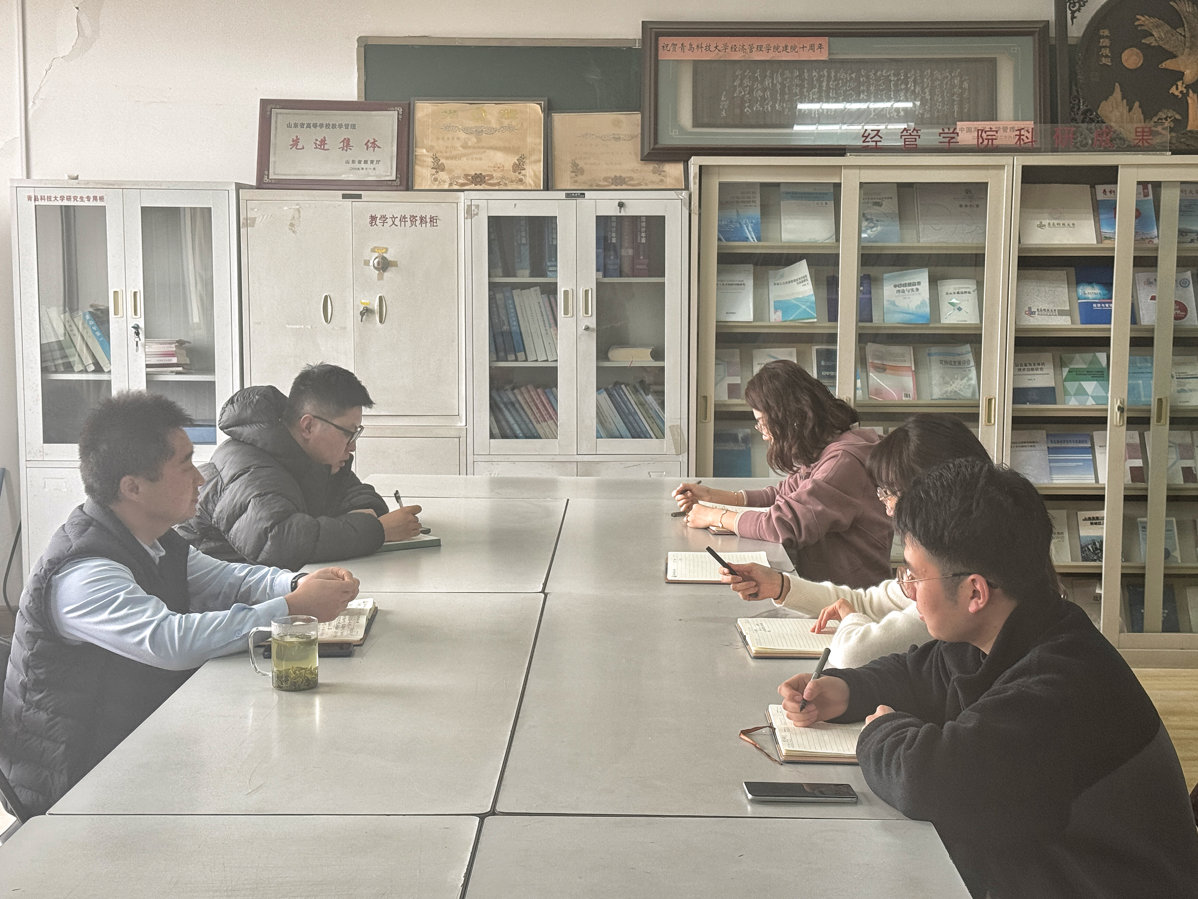 学工办在经管楼403会议室召开新学期学生工作部署会。学院党委副书记兼副院长牛宝卫、学工办主任付继航及全体专职辅导员出席会议。