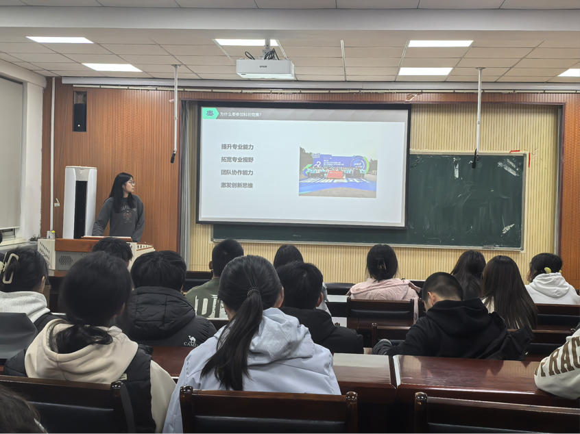 活动伊始,主持人李兴荣迅速将大家引入主题,细致入微地介绍学院科创比赛的大致框架和方向。让同学们对即将开始的竞赛有了初步认识。紧接着,主讲嘉宾向同学们介绍参与科创竞赛的知识与意义,引导大家认识到此为锻炼个人能力、促进自身成长的有效途径。