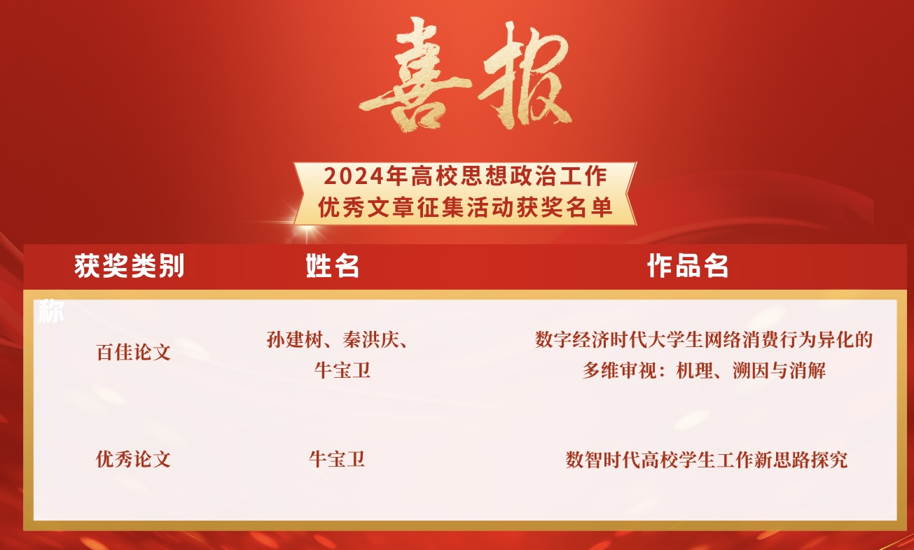 近日,由教育部高校思想政治工作队伍培训研修中心与《高校辅导员》编辑部联合主办的2024年高校思想政治工作优秀文章征集活动评选结果正式揭晓。久久小说 提报的两篇论文从全国1549篇论文中脱颖而出,分别荣获“百佳论文”(第一作者:孙建树)和“优秀论文”(第一作者:牛宝卫)。