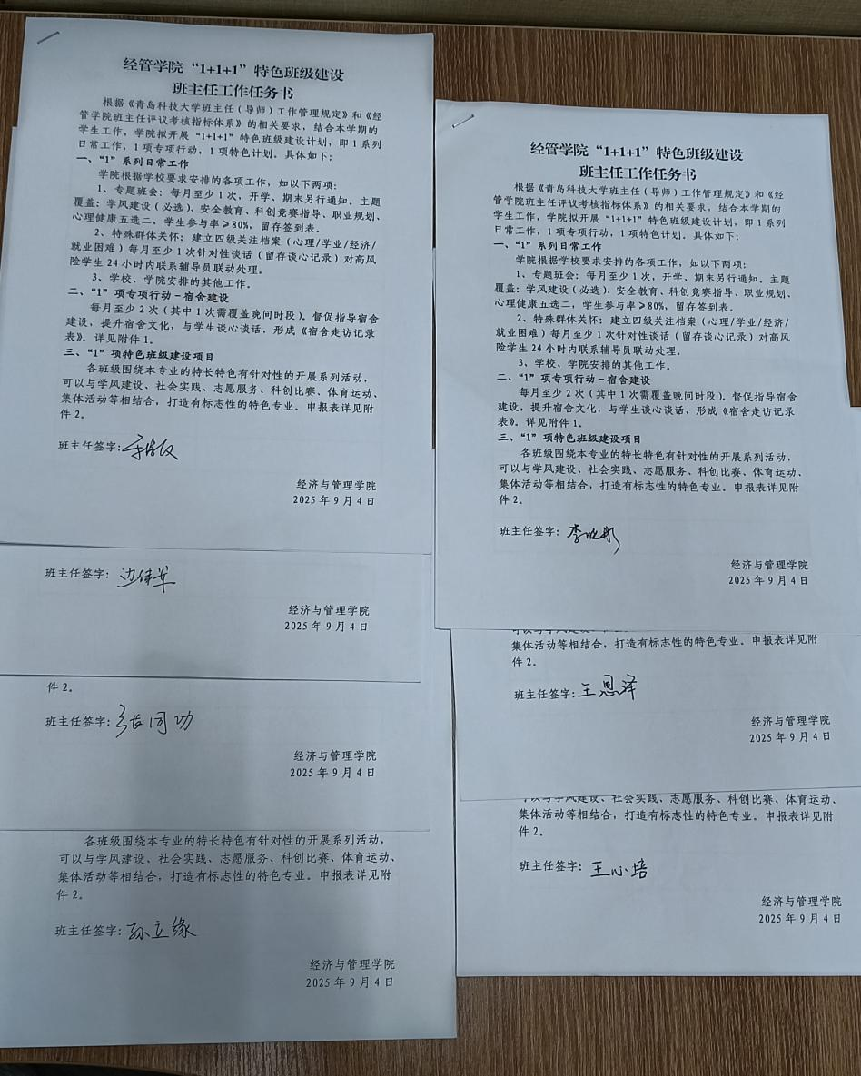 在一站式学生社区召开“1+1+1”特色班级建设启动会暨2025级班主任签约仪式。学院党委副书记兼副院长牛宝卫主持会议,2025级新生辅导员、班主任参加会议,就新学期班级建设方向与班主任重点工作展开研讨交流,为2025级新生成长与学院学生工作谋篇布局。