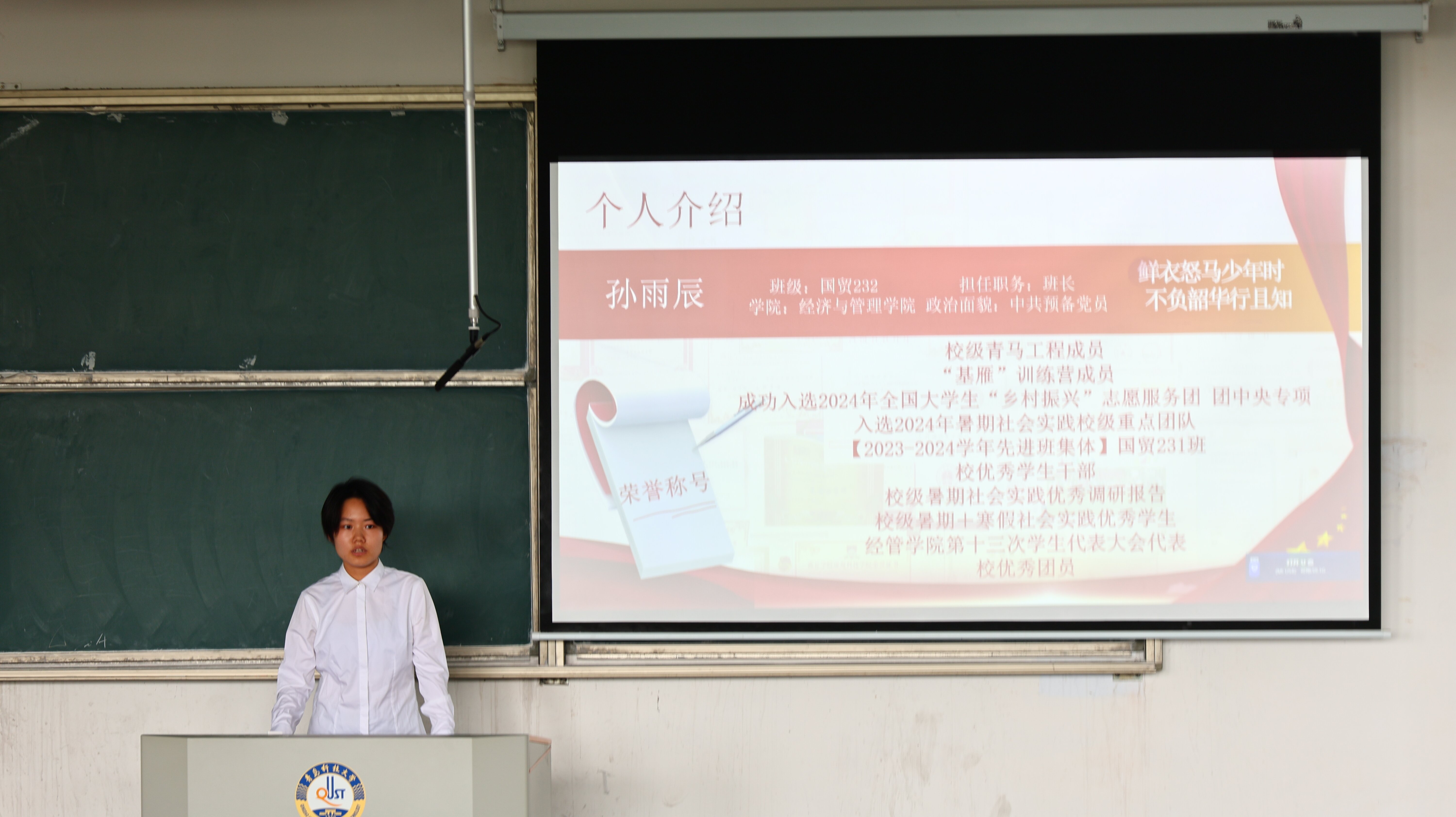 为充分发挥党员先锋模范带头作用,在广大学生群体中营造比学赶超的良好学习氛围,2023级国际经济与贸易专业本科生、中共预备党员孙雨辰结合自身学业情况,分享了日常学习方法和参与学科竞赛的有关经历。她强调,作为一名学生党员,平衡学业与党团工作的关键在于“以责任驱动效率”。学生党员的先进性不仅体现在思想上,更要通过扎实的学业成绩,为身边同学树立“又红又专”的榜样。