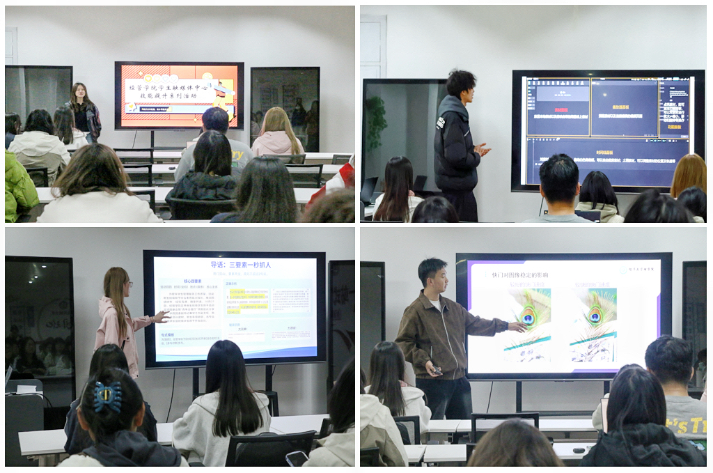 学生融媒体中心技能系列提升活动旨在通过专题培训、实操指导等形式开展“传帮带”,有效推动新成员快速掌握内容策划、视觉设计等核心技能,实现从“零基础”到“能独立产出”的跨越。接下来,学院将持续开展系列技能培训活动,深化“学生成长共同体”建设,聚焦学生骨干能力培养,切实把活动成效转化为服务学生全面发展的实际助力,为学院宣传工作高质量发展注入新动能,为生动传递学院声音、展现经管精神风貌提供坚实支撑。