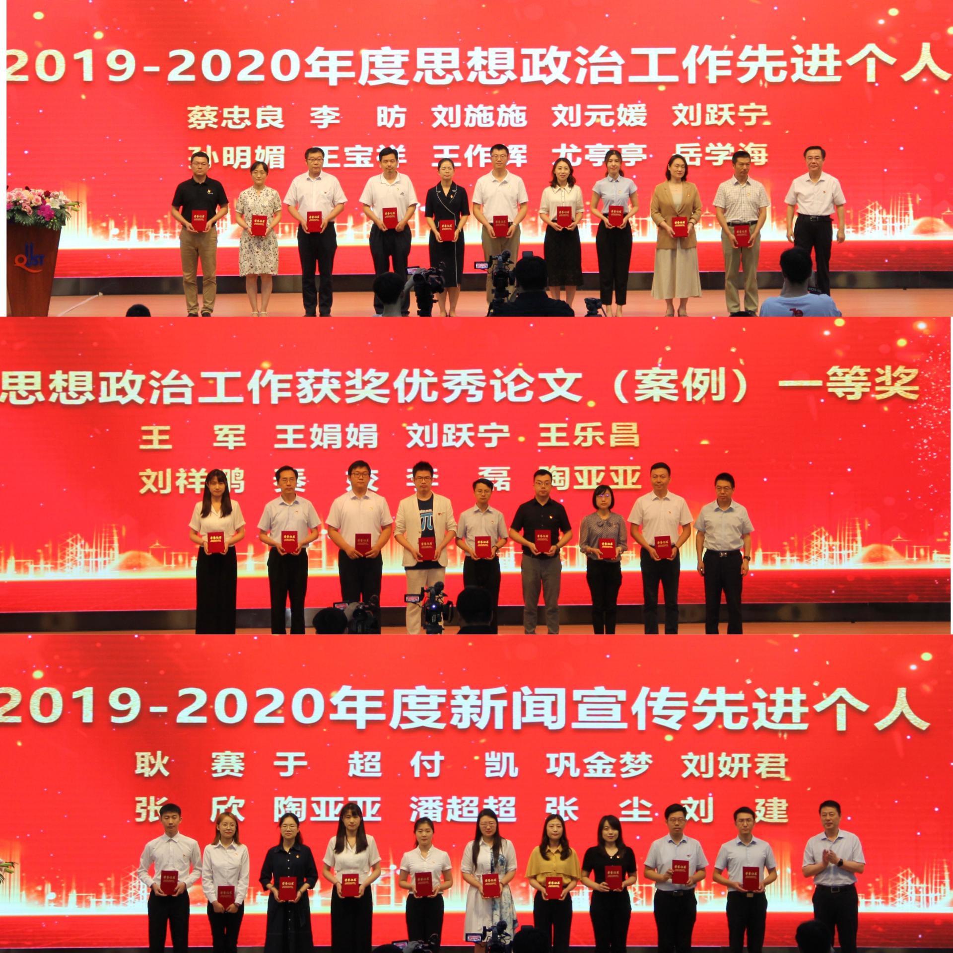 优秀网站”称号,刘跃宁获评“2019-2020年度思想政治工作先进个人”,刘跃宁、孙一君、王聪撰写的论文获评“2019-2020年度党建与思想政治工作获奖优秀论文(案例)一等奖”,付凯获评“新闻宣传先进个人”。此外,王聪、刘跃宁、孙一君撰写的论文,张显全、李雯雯、孙一君撰写的论文获“优秀论文三等奖”。