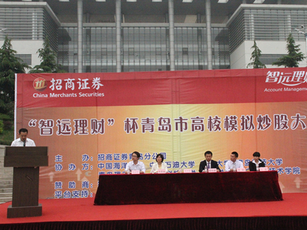 党总支副书记张同雷发表讲话。张同雷指出,在当今国际经济形势日益复杂的背景下,中国正面临着重要的转型时期,随着我国对于股票认识的飞跃,希望同学们更多地关注股票。随后校团委副书记曲慧敏老师为大家阐述了继智商、情商之后,财商的重要性,同时,众多高校的参与也扩大了本次比赛的影响力。她希望同学们通过本次比赛展示风采、获得友谊并锻炼自己的能力。最后由本次比赛的主办方招商证券青岛分公司代表袁伟彬先生上台发言,他为在场观众阐述了“以卓越的金融服务实现客户价值增长,推动证券行业进步”的公司使命,希望与久久小说