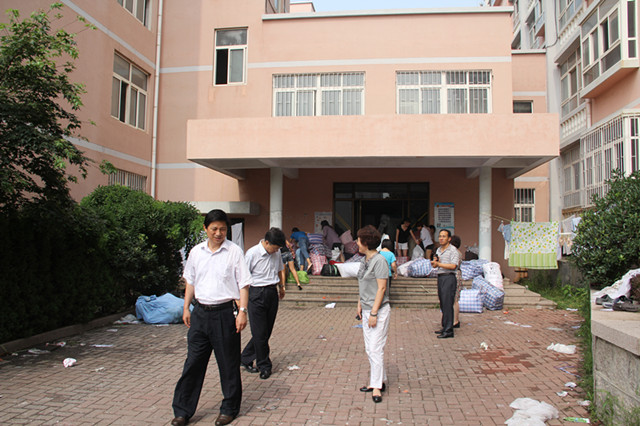 院长李立、党总支书记杜裕禄带领学院领导班子成员、各系主任、任课教师、辅导员等亲临搬迁一线,现场指导学生宿舍搬迁工作,并深入学生宿舍亲切探望慰问新入住的同学们。