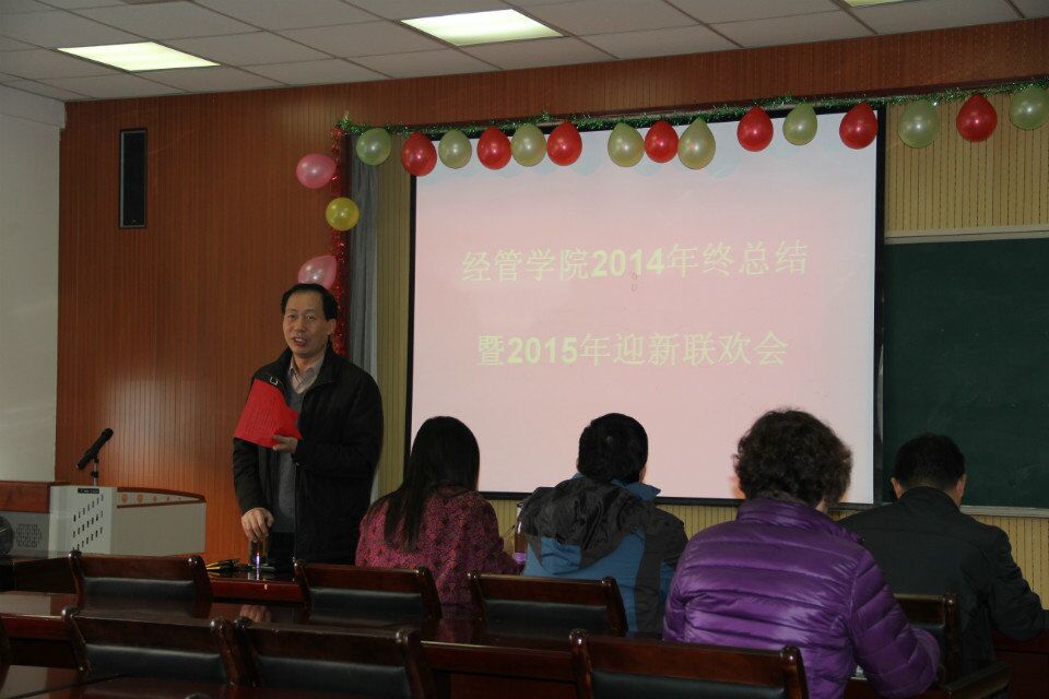 于417会议室召开2014年度总结大会暨2015年迎新联欢会,学院全体教职员工参加会议。
