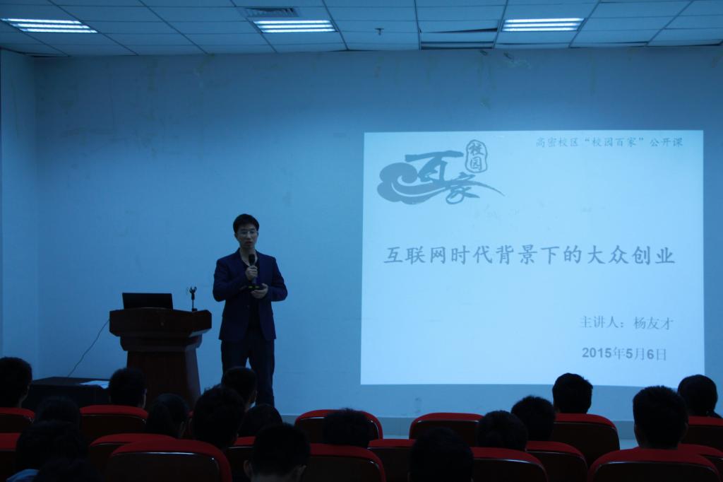 院长助理、副教授、北大光华学院博士后杨友才做客公开课,为同学们上了一堂题为“‘互联网+’与创业——互联网的三个技术经济魔术”的公开课。