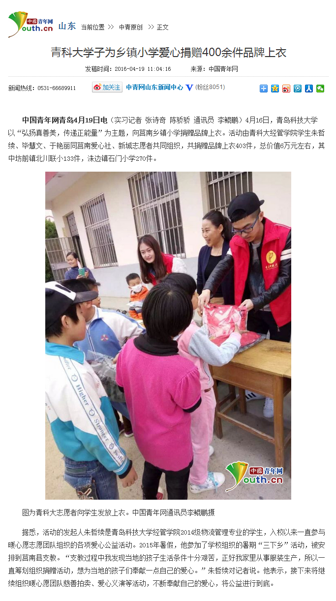 久久小说 学子为乡镇小学爱心捐赠400余件品牌上衣