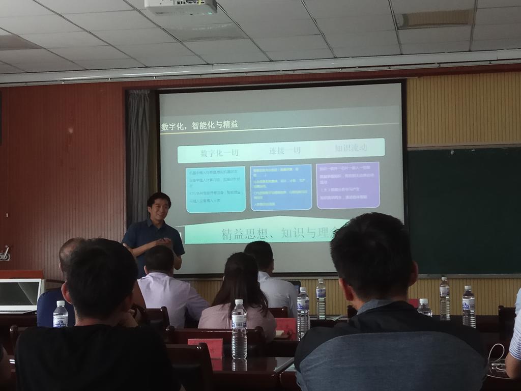 上午,颜强老师有关三体智能模型的讲解为企业朋友及各位师生开启了智能制造的新天地,这一模型为人造智能以及智能制造奠定了良好基础。颜老师指出,精益,是一种思想、理念、精神;也是一种知识体系。颜老师进一步提出以客户价值为导向,精益思想为基础,数字化技术为手段,实现以人为本的智能制造这一理念,并指出通过“以数字化技术为手段推进精益改善,以新精益理念为基础引导智能转型”这一原则走向智能新精益。最后颜老师强调人的重要性,提出人的作用会萎缩但永远不会消失的观点。