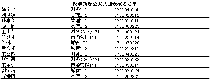 ;另外,还有13位2017级新生参与了校迎新晚会大艺团表演。