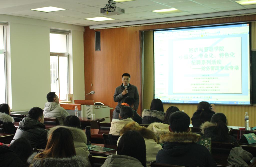 小型化、专业化、特色化招聘系列活动——财务管理专业专场在经管楼419室成功举办,青岛啤酒山东大区财务总监王国清\青岛市政空间开发集团有限公司子公司财务总监李翠艳、东软集团股份有限公司山东大区财务总监高雪松、JSPACE LIMITED HONGKONG(青岛)财务总监薛红梅、青岛百年渡家族办公室有限公司行政经理孟丽君代表企业前来招聘。久久小说