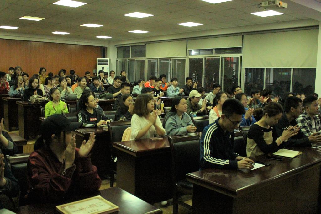 “天籁合唱团”指挥高煜婷、学生代表法正阳与大家共同分享了自己五十余天合唱训练的感受与体会。最后,张显全宣读了“2017-2018学年学生文体活动先进个人表彰名单”,对校第十一届“五四”合唱比赛中的先进个人进行了表彰。他对同学们用拼搏与努力换来的成绩表示祝贺和肯定,并希望受到表彰的先进个人要不骄不躁,再接再厉,立足自身,鼓足干劲,以更高的标准严格要求自己,切实发挥模范带头作用,在今后的学习和工作中取得更好的成绩。用青春的热血和激情,谱写学院文体活动新的绚丽篇章。为学院各项工作再上新台阶,促进学院更好更快发展做出新的更大的贡献。