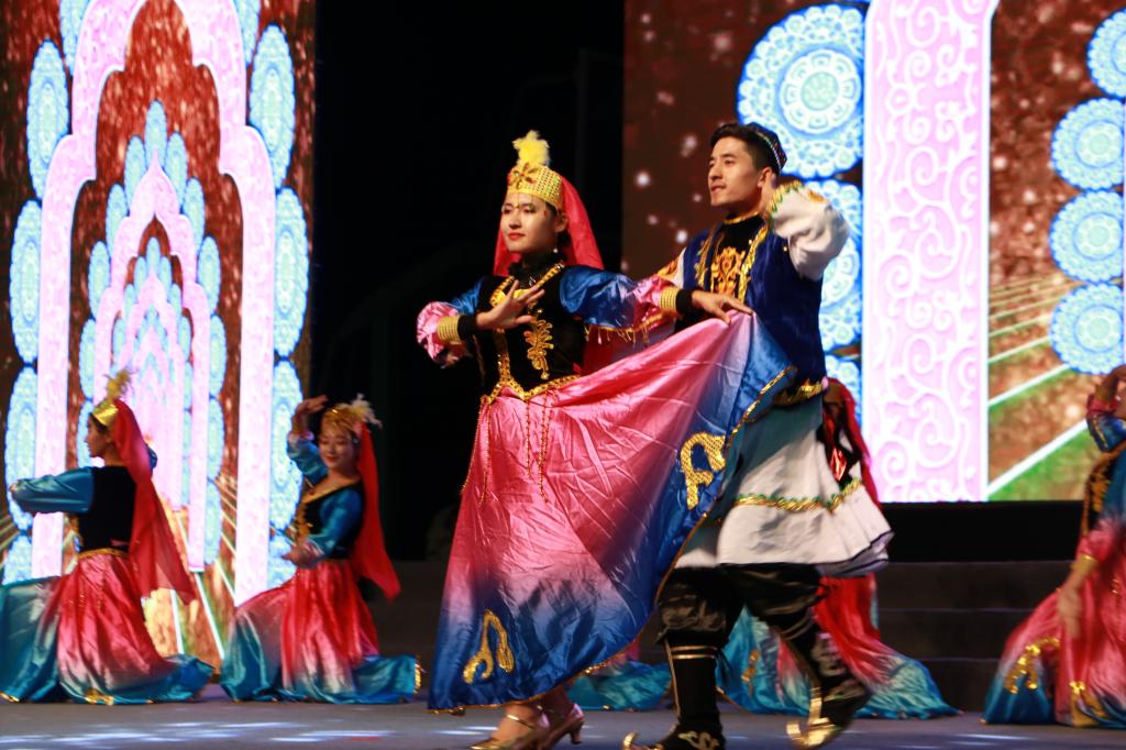 精心推出的民族舞蹈《盛世欢腾》带领观众走进美丽富饶、幅员辽阔的大美新疆,学生们曼妙的舞姿、跳跃的鼓点将民族元素、中国烙印展现在满含异域风情的舞步里,舞出了经管学子团结向上的精神风貌,舞出了五十六个民族手足相亲,守望相助,舞出了对祖国母亲繁荣昌盛的美好祝愿,呈现出一派中华民族大团结、繁荣、朝气蓬勃的景象,场下欢呼掌声迭起,掀起晚会的小高潮。