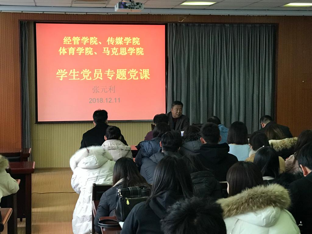 、传媒学院、马克思主义学院、体育学院党总支书记、专兼职辅导员、学生党员100余人参加党课学习。