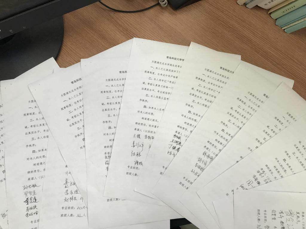 学生纪律处分管理规定》,分年级组织全体学生签订诚信考试承诺书,结合典型案例,引导学生严守考试纪律红线。