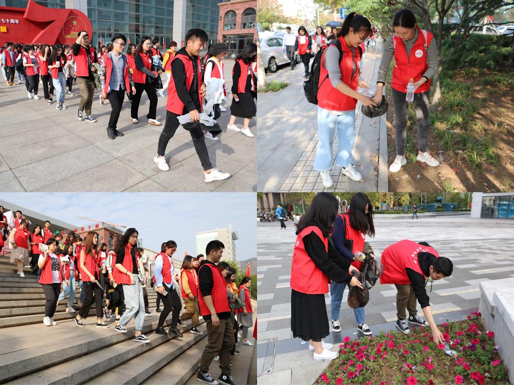 学院组织学生全体学生党员和学生骨干于香港东路及其周边街道开展了“党员先锋志愿服务行”活动,沿云岭路、香港东路、秦岭路街道,对街道地面和卫生死角的垃圾和口香糖等“牛皮癣”污渍进行了集中清理,并沿途进行市容文明和环保知识宣传,为文明卫生城市建设贡献一己之力。志愿者们灿烂的微笑、无私的付出所传递出的正能量,吸引着过往的市民不断地加入到志愿服务活动当中来,用实际行动展现了雷锋精神所蕴涵的热情服务和无私奉献精神,成为城市中一道靓丽的风景线。