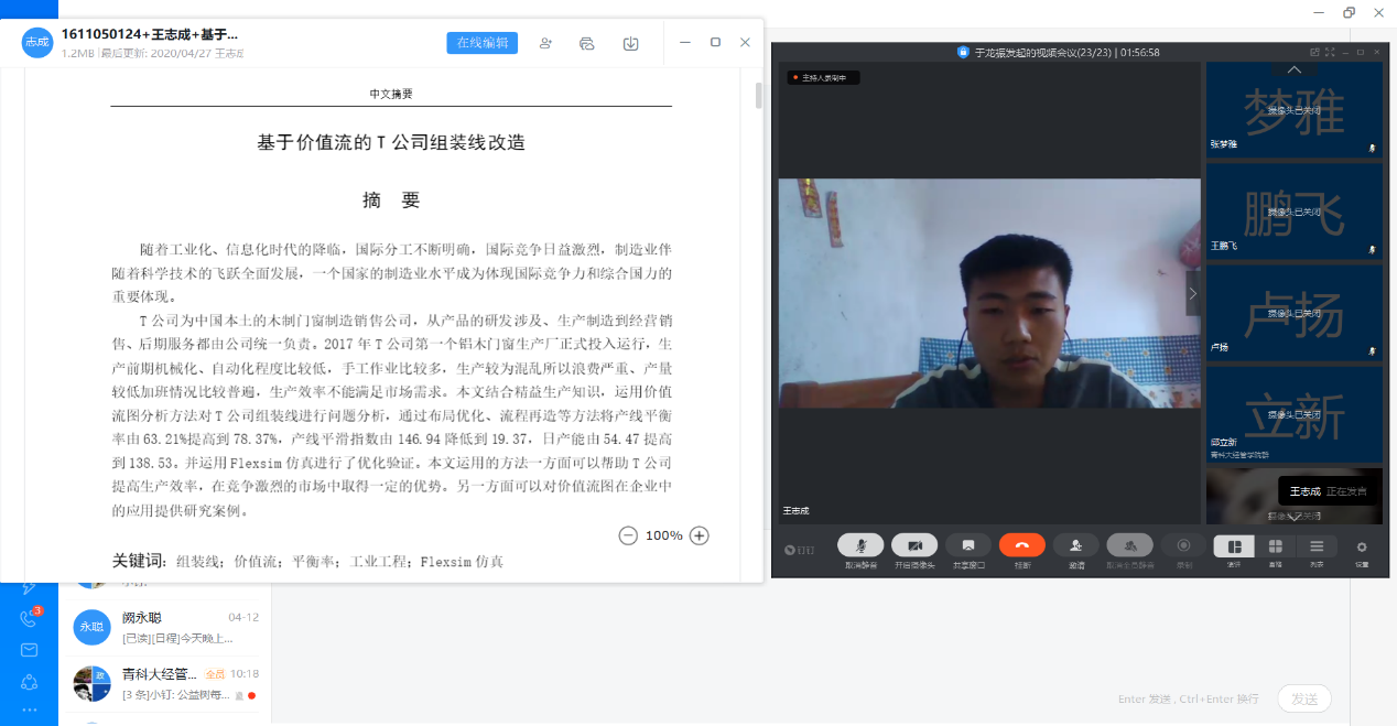 2020届本科毕业生答辩进度计划,学院本科生毕业论文中期检查报告会于4月28日下午顺利进行。受新冠疫情影响,学校推迟开学,学院各专业提前组织计划,克服重重困难,对550余名2020届毕业生开展了线上毕业论文中期检查。学院7个本科专业共分成23个检查小组,各专业本科生导师以及全体毕业生通过腾讯会议等网络平台在线参加了毕业论文中期检查报告会。